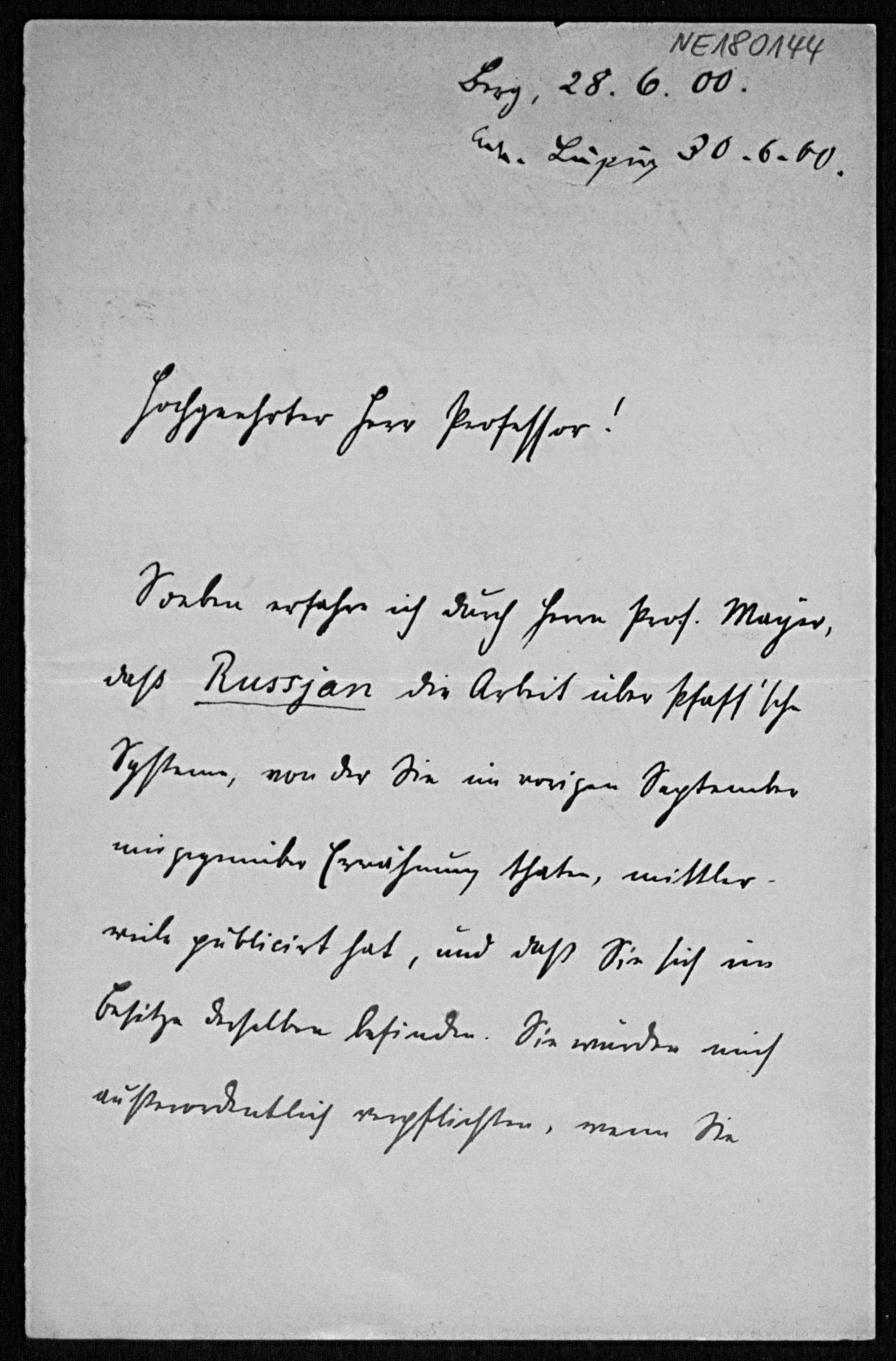 Brief von Eduard von Weber an Friedrich Engel 28.6.1900
