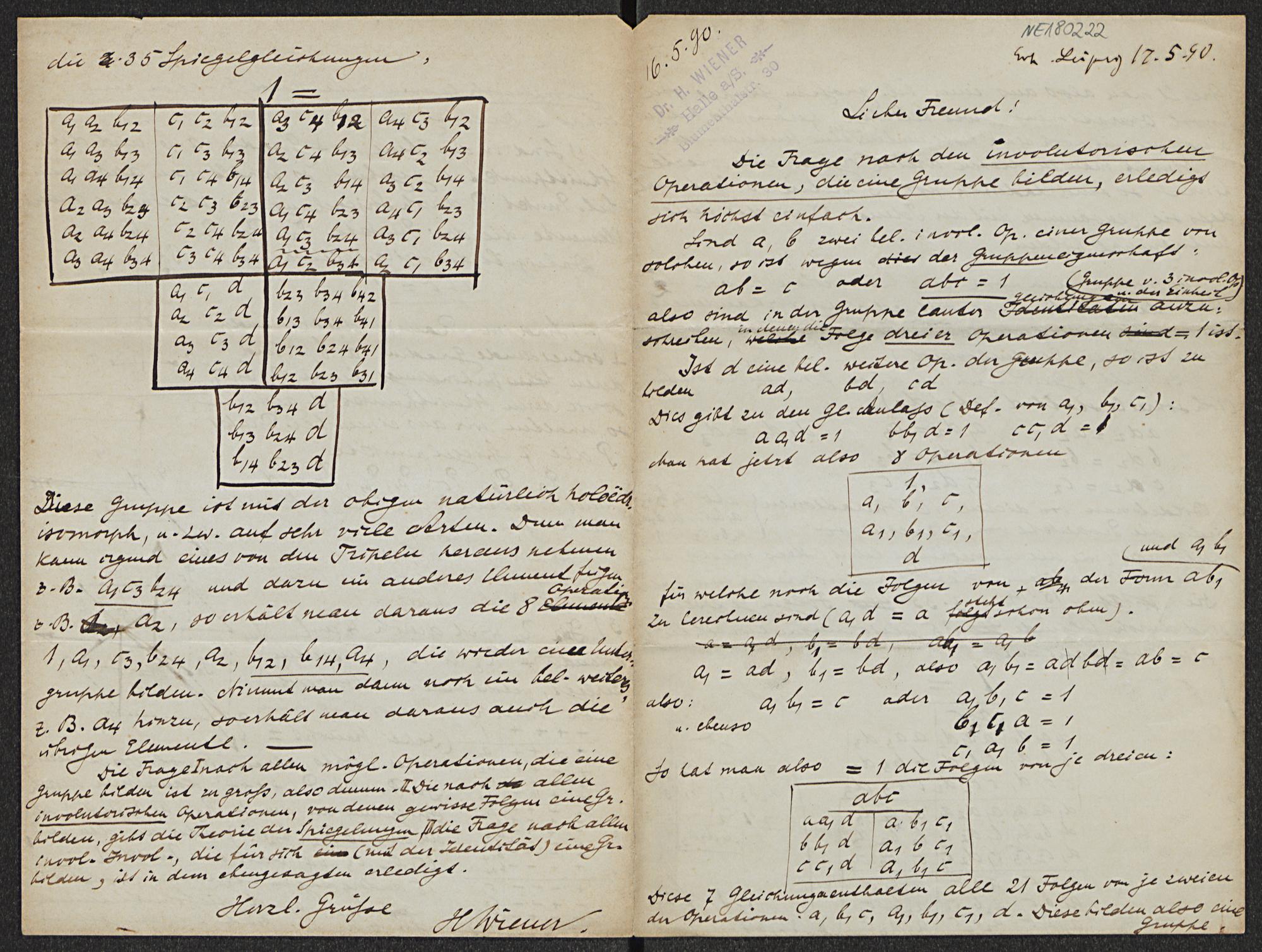 Brief von Hermann Wiener an Friedrich Engel vom 16.5.1890