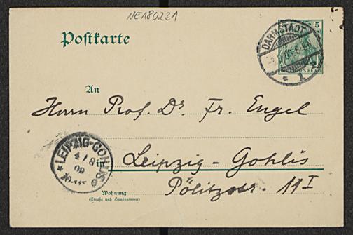 Postkarte von Hermann Wiener an Friedrich Engel vom 3.8.1903