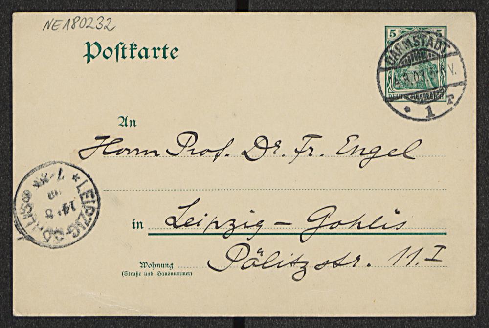 Postkarte von Hermann Wiener an Friedrich Engel vom 13.8.1903