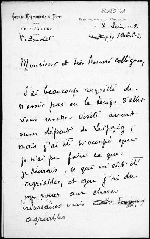 Brief von Carlo Bourlet an Friedrich Engel vom 8.6.1902