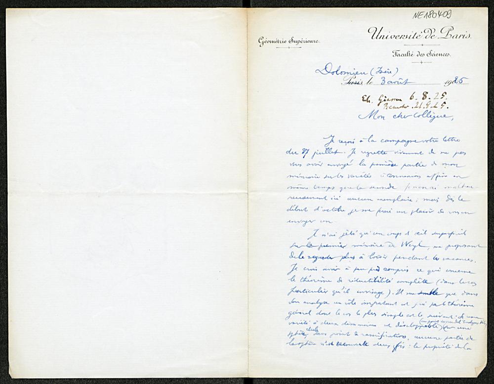 Brief von Élie Cartan an Friedrich Engel vom 3.8.1925