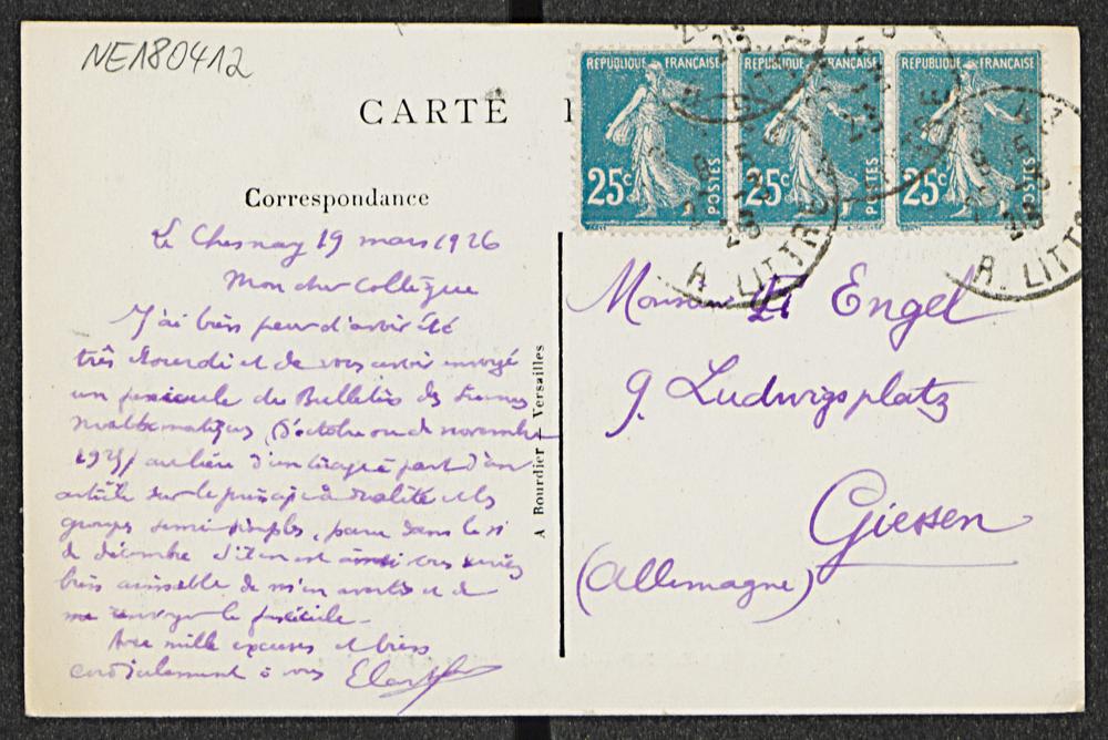 Ansichtskarte von Élie Cartan an Friedrich Engel vom 19.3.1926