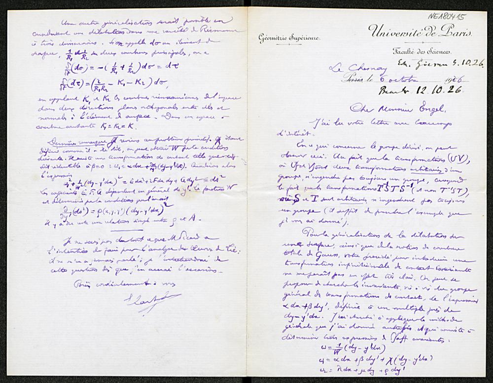 Brief von Élie Cartan an Friedrich Engel vom 6.10.1926