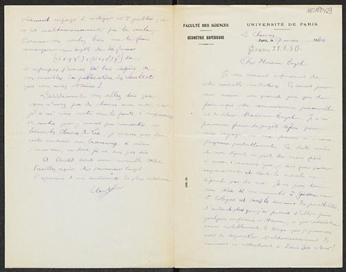 Brief von Élie Cartan an Friedrich Engel vom 27.3.1930