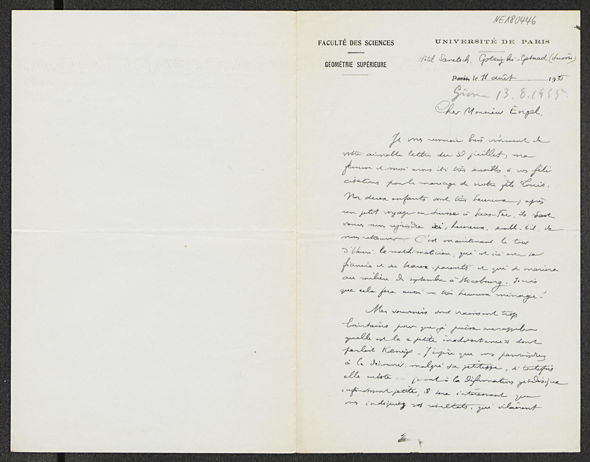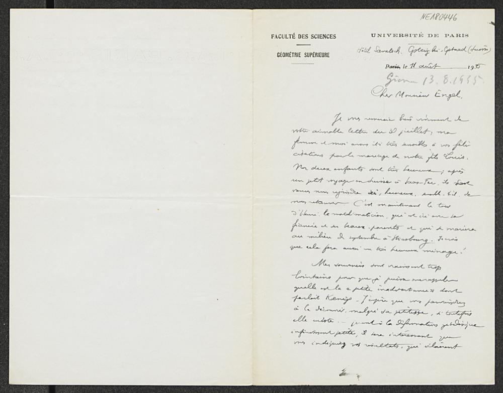 Brief von Élie Cartan an Friedrich Engel vom 11.8.1935