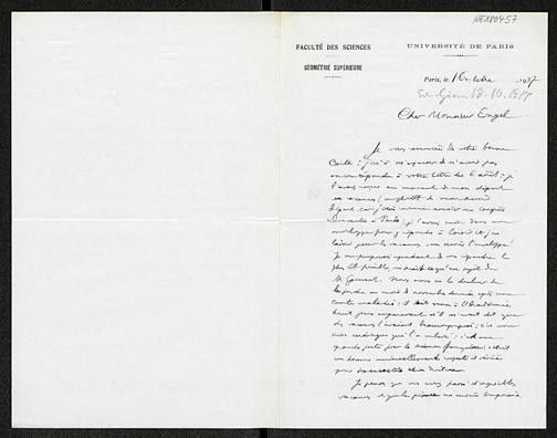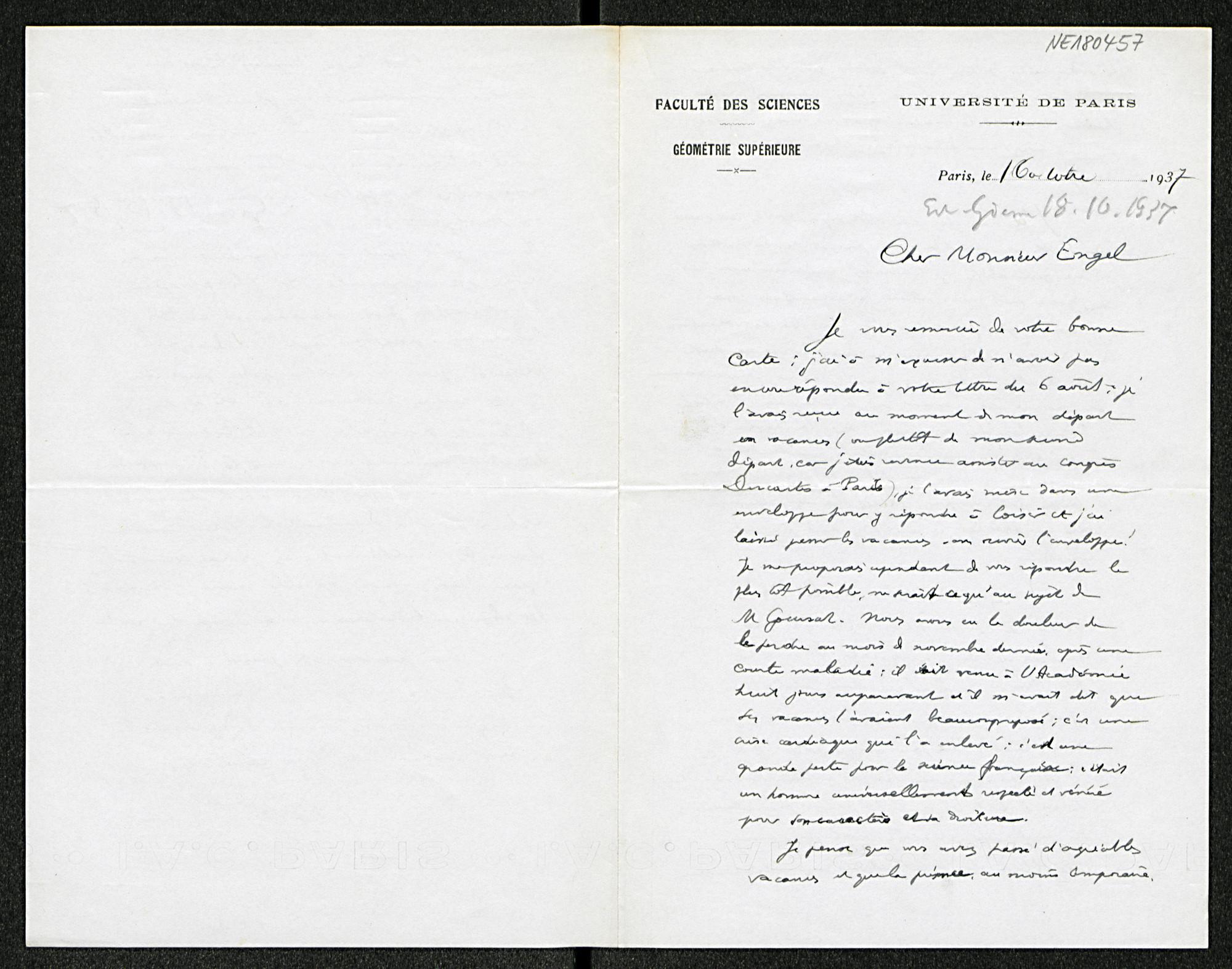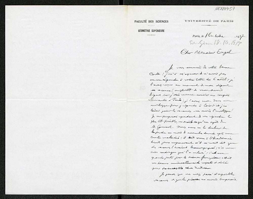 Brief von Élie Cartan an Friedrich Engel vom 16.10.1937