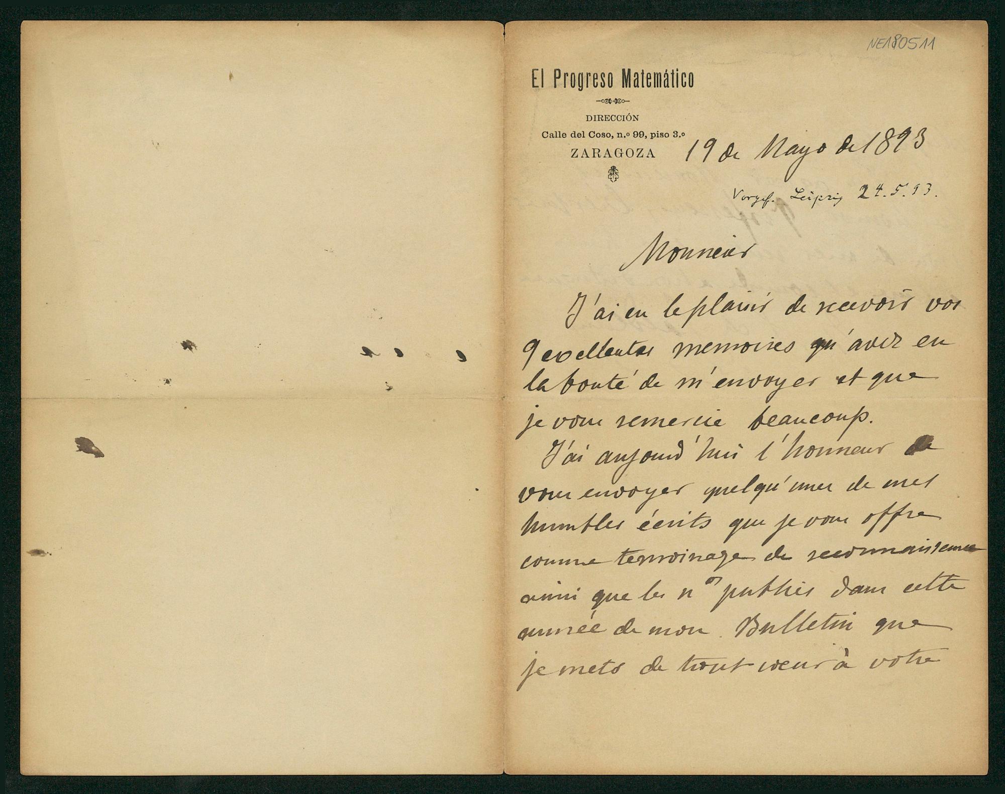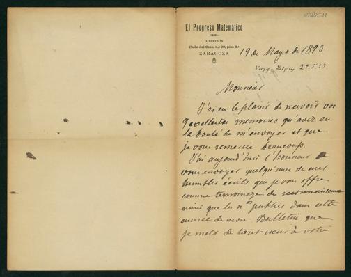 Brief von Zoel García de Galdeano an Friedrich Engel vom 19.5.1893