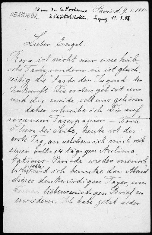 Brief von David Hilbert an Friedrich Engel vom 9.5.1885 (?)