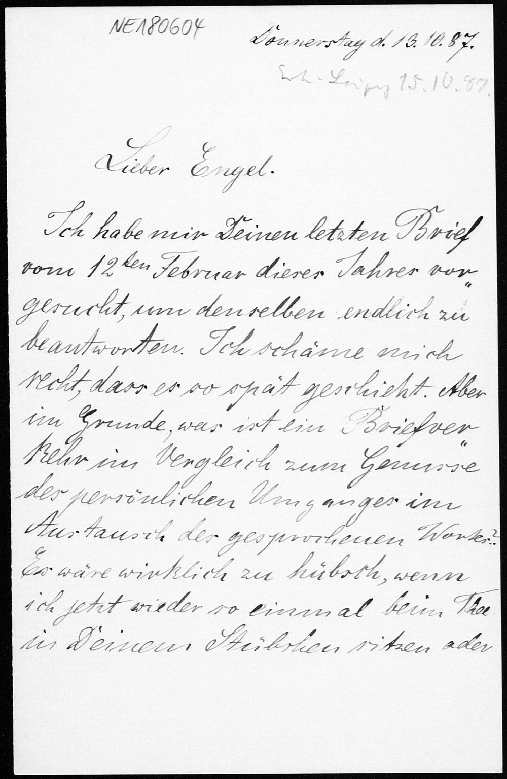 Brief von David Hilbert an Friedrich Engel vom 13.10.1887
