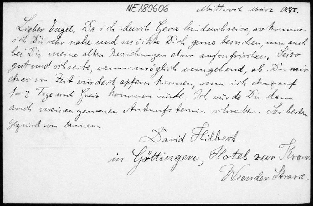 Postkarte von David Hilbert an Friedrich Engel vom 28.3.1888