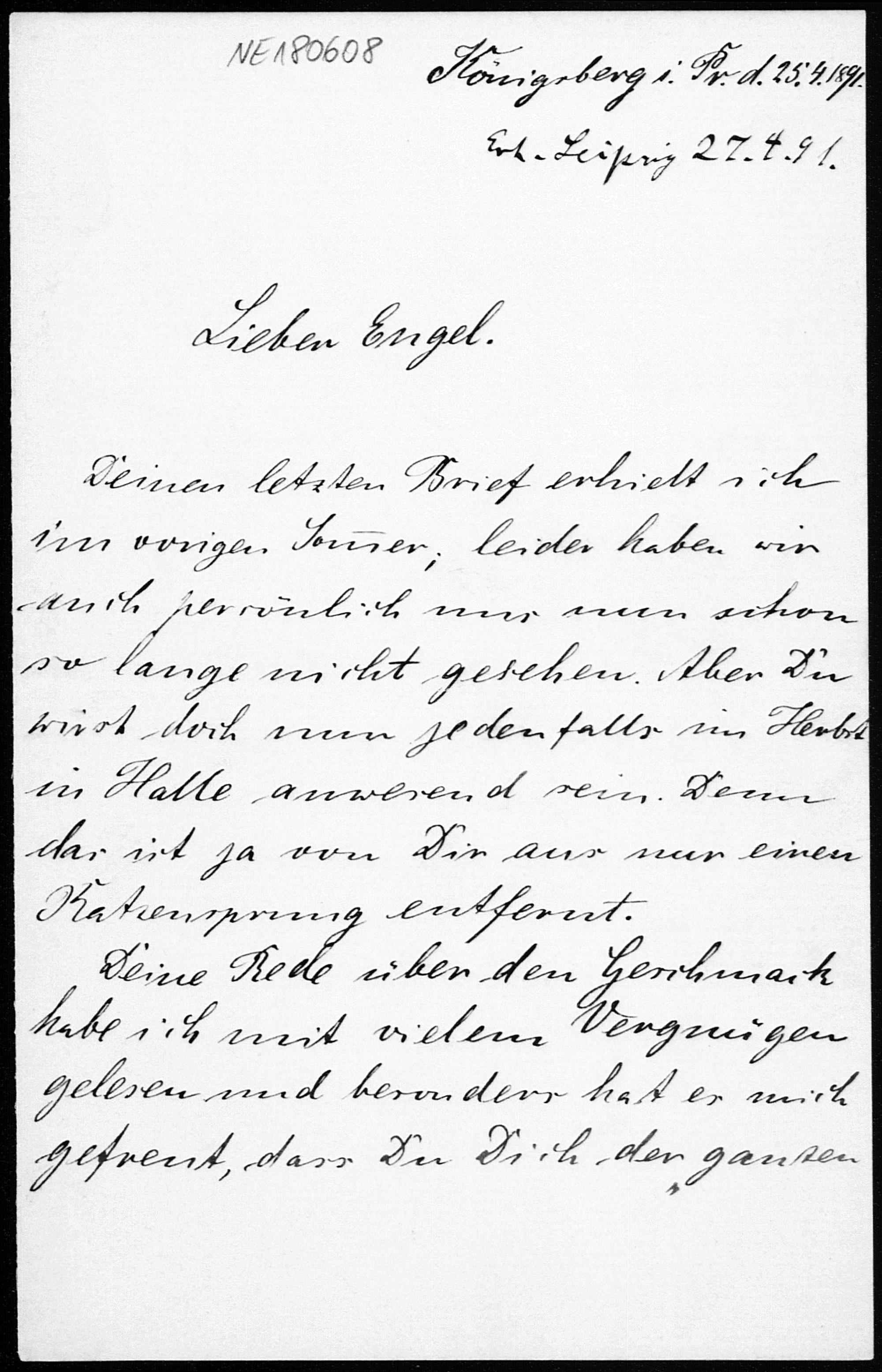 Brief von David Hilbert an Friedrich Engel vom 25.4.1891