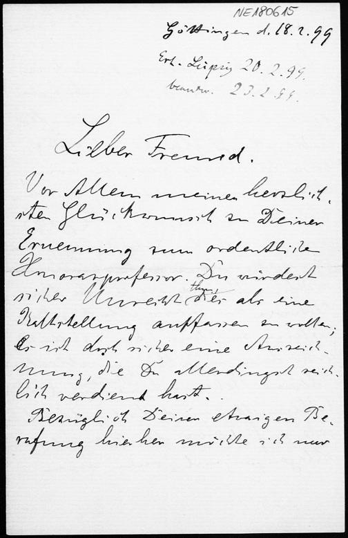Brief von David Hilbert an Friedrich Engel vom 18.2.1899