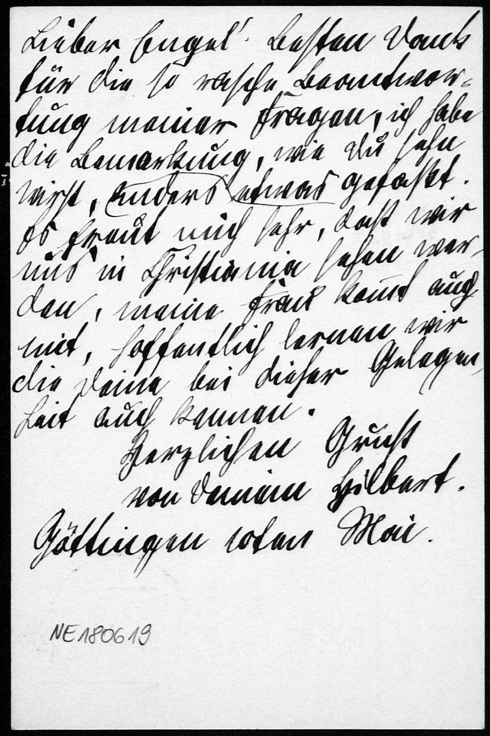 Postkarte von David Hilbert an Friedrich Engel vom 10.5.1902
