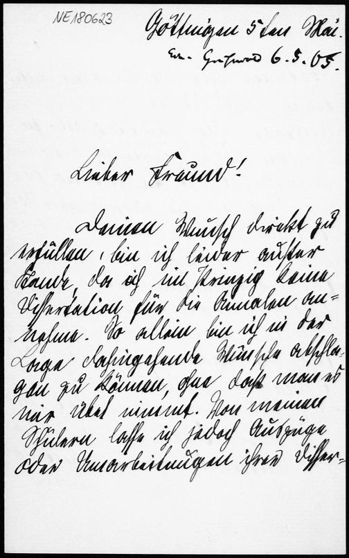 Brief von David Hilbert an Friedrich Engel vom 5.5.1905