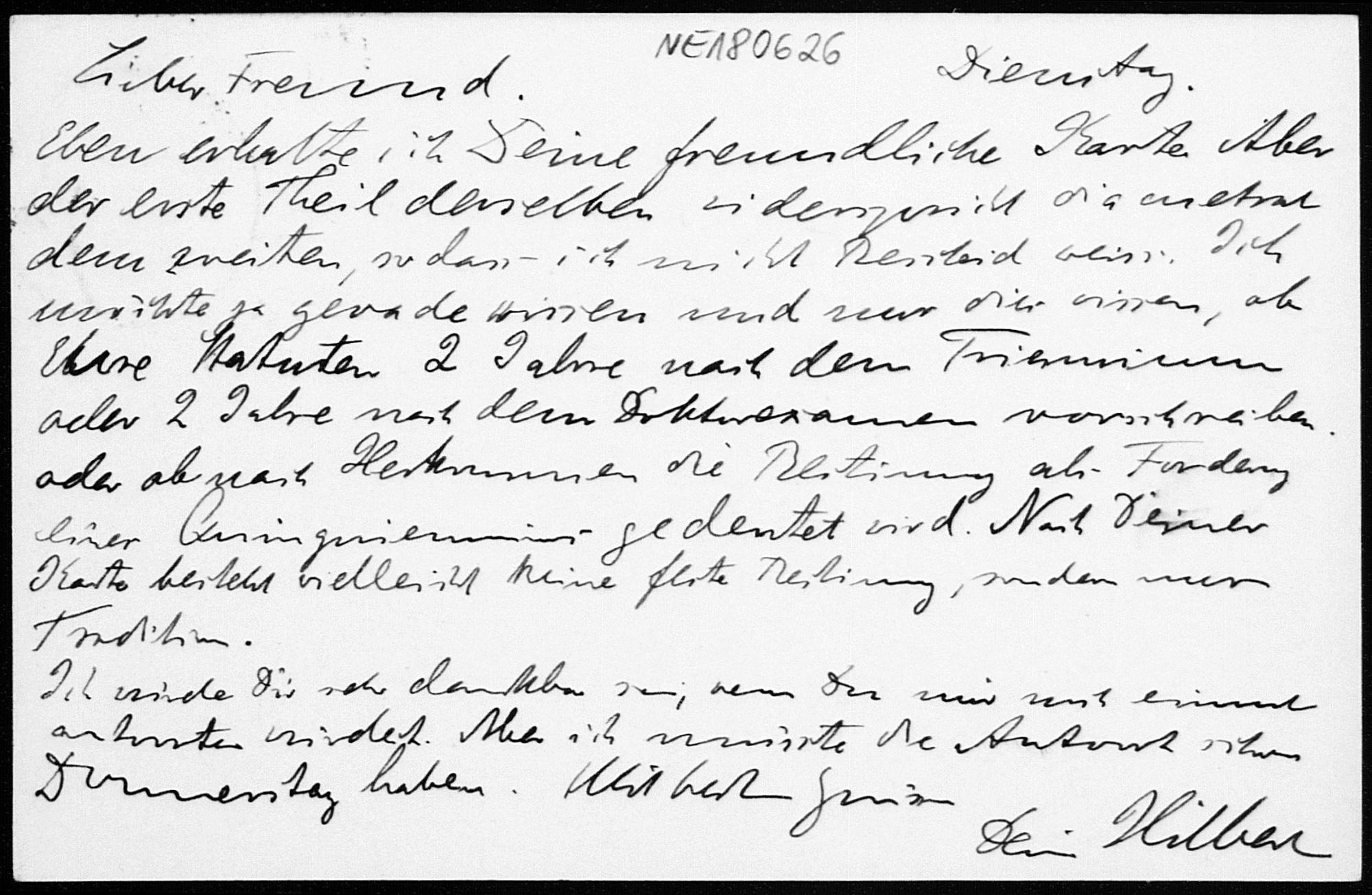 Postkarte von David Hilbert an Friedrich Engel vom 15.2.1910