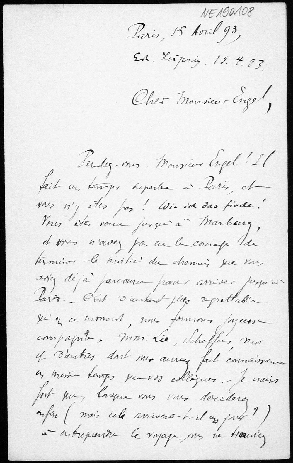 Brief von Arthur Tresse an Friedrich Engel vom 15.4.1893