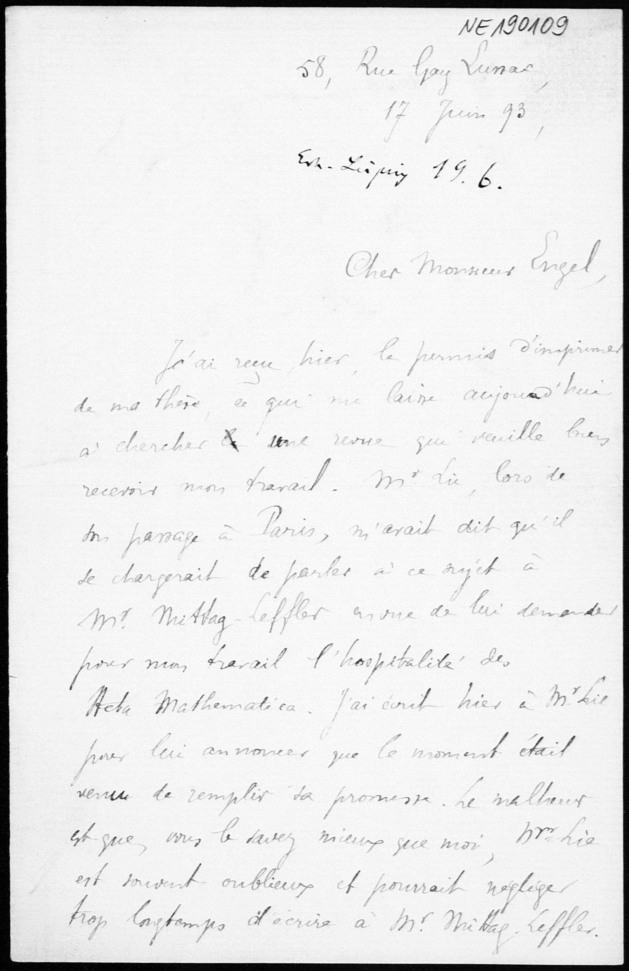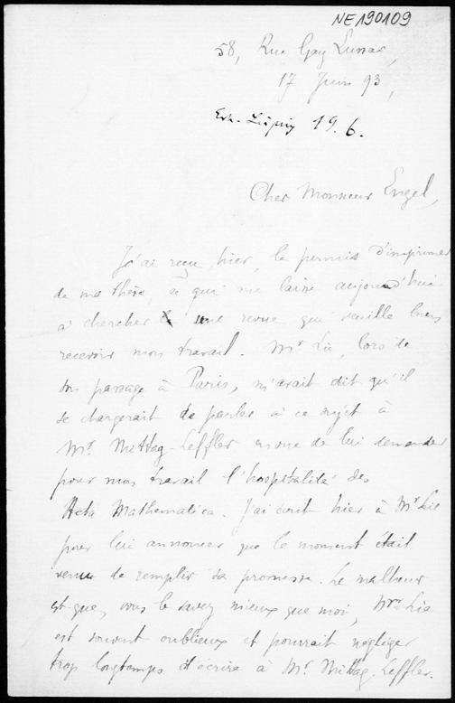 Brief von Arthur Tresse an Friedrich Engel vom 17.6.1893