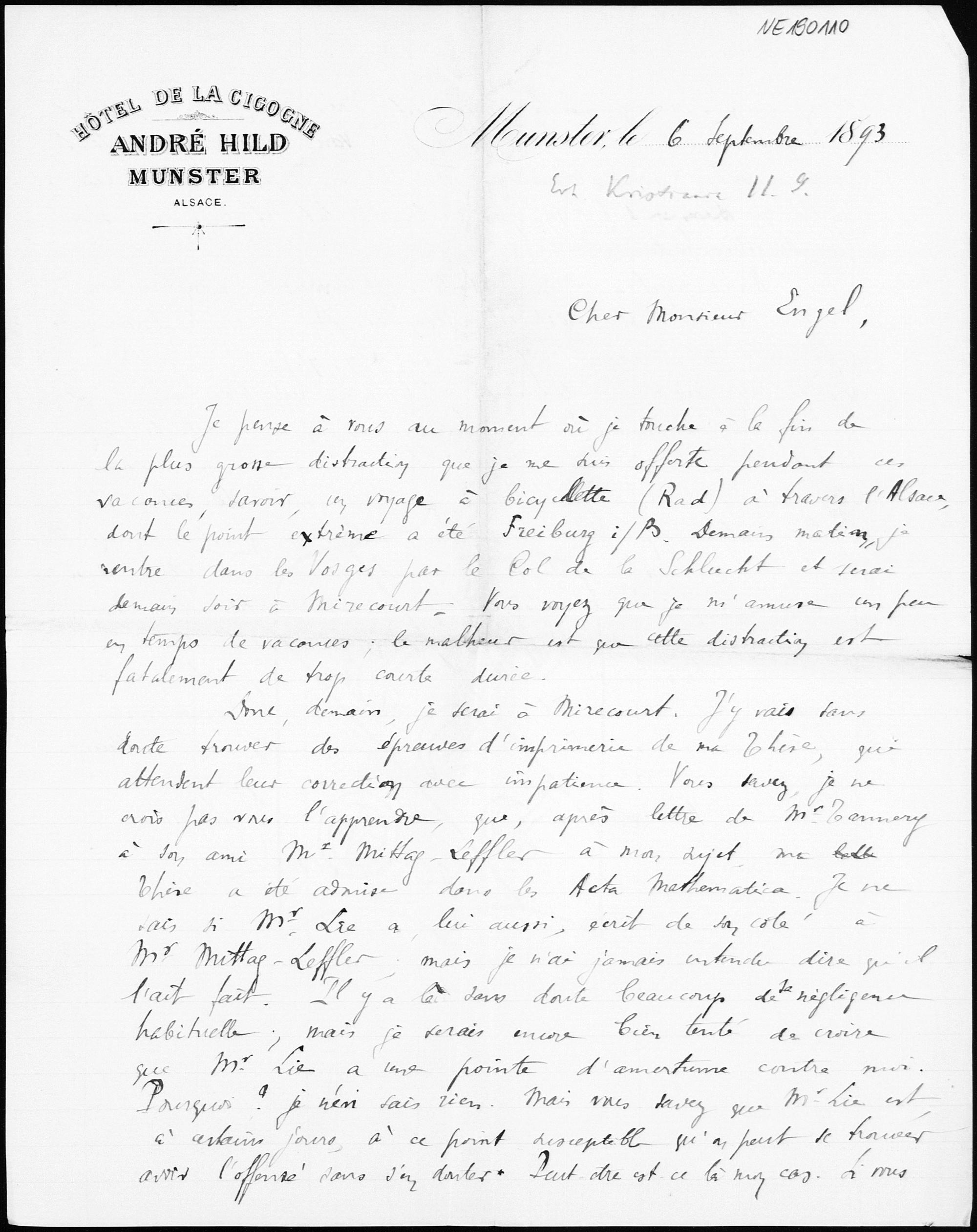 Brief von Arthur Tresse an Friedrich Engel vom 6.9.1893