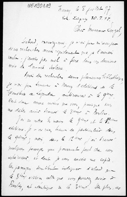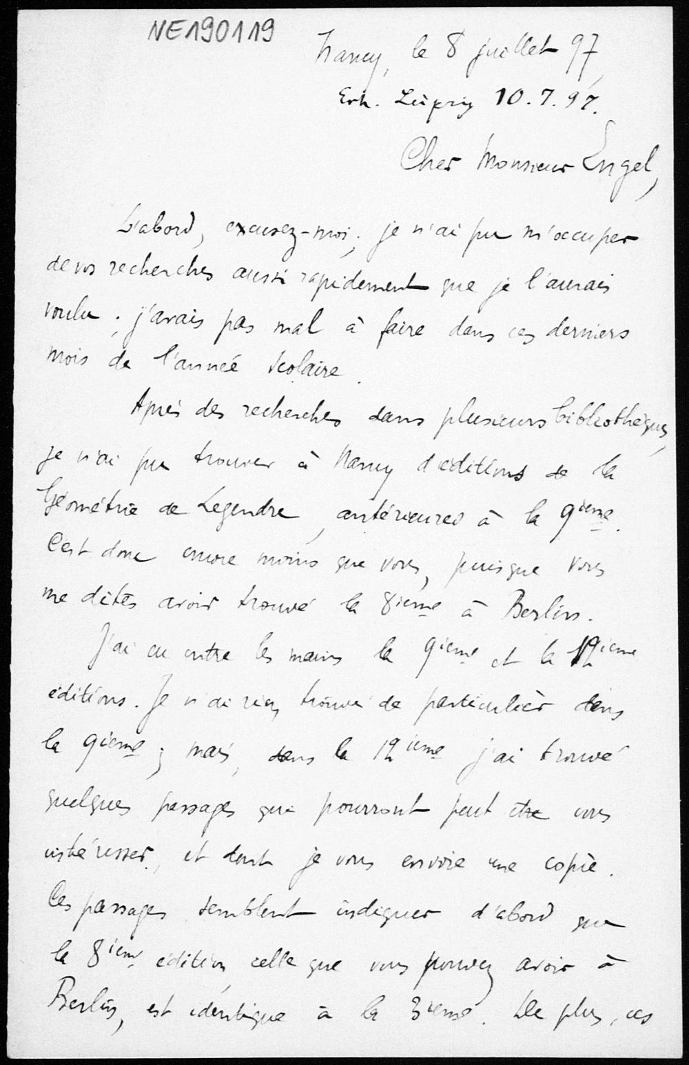 Brief von Arthur Tresse an Friedrich Engel vom 8.7.1897