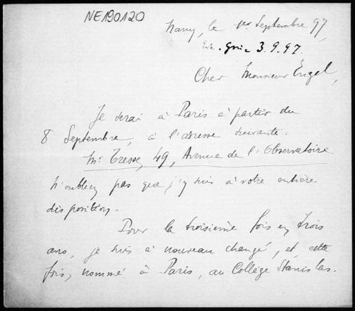 Brief von Arthur Tresse an Friedrich Engel vom 1.9.1897