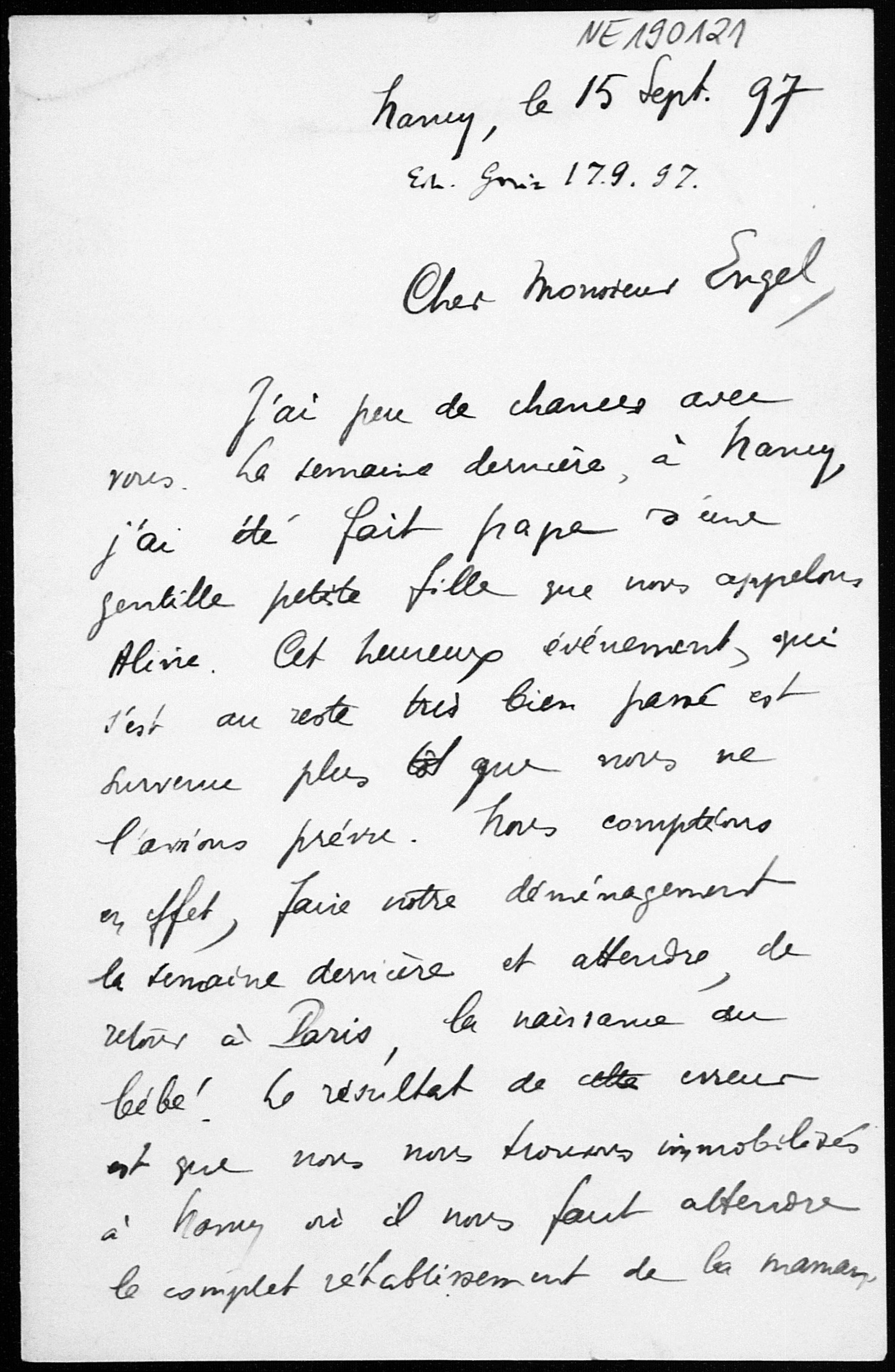 Brief von Arthur Tresse an Friedrich Engel vom 15.9.1897