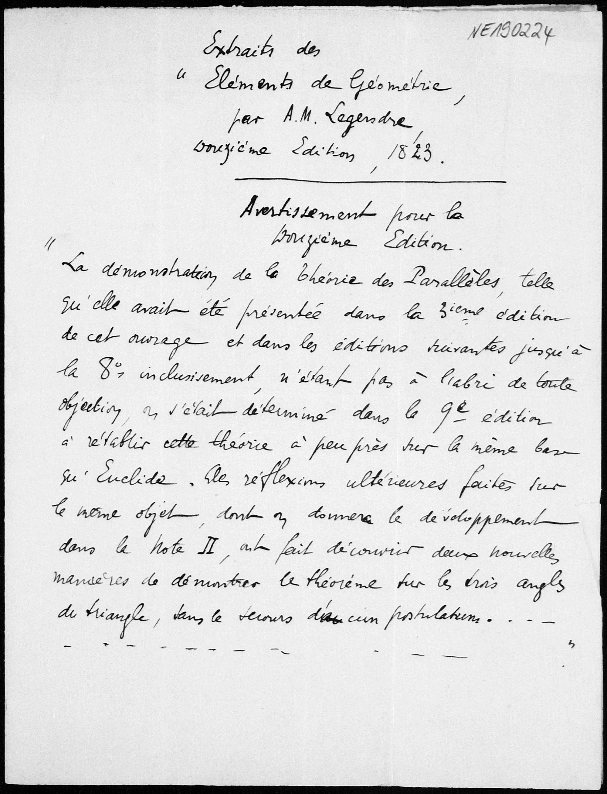 'Eléments de Géométrie' von Legendre, 11.(?) Ausgabe, Paris 1823. Gesendet an Friedrich Engel