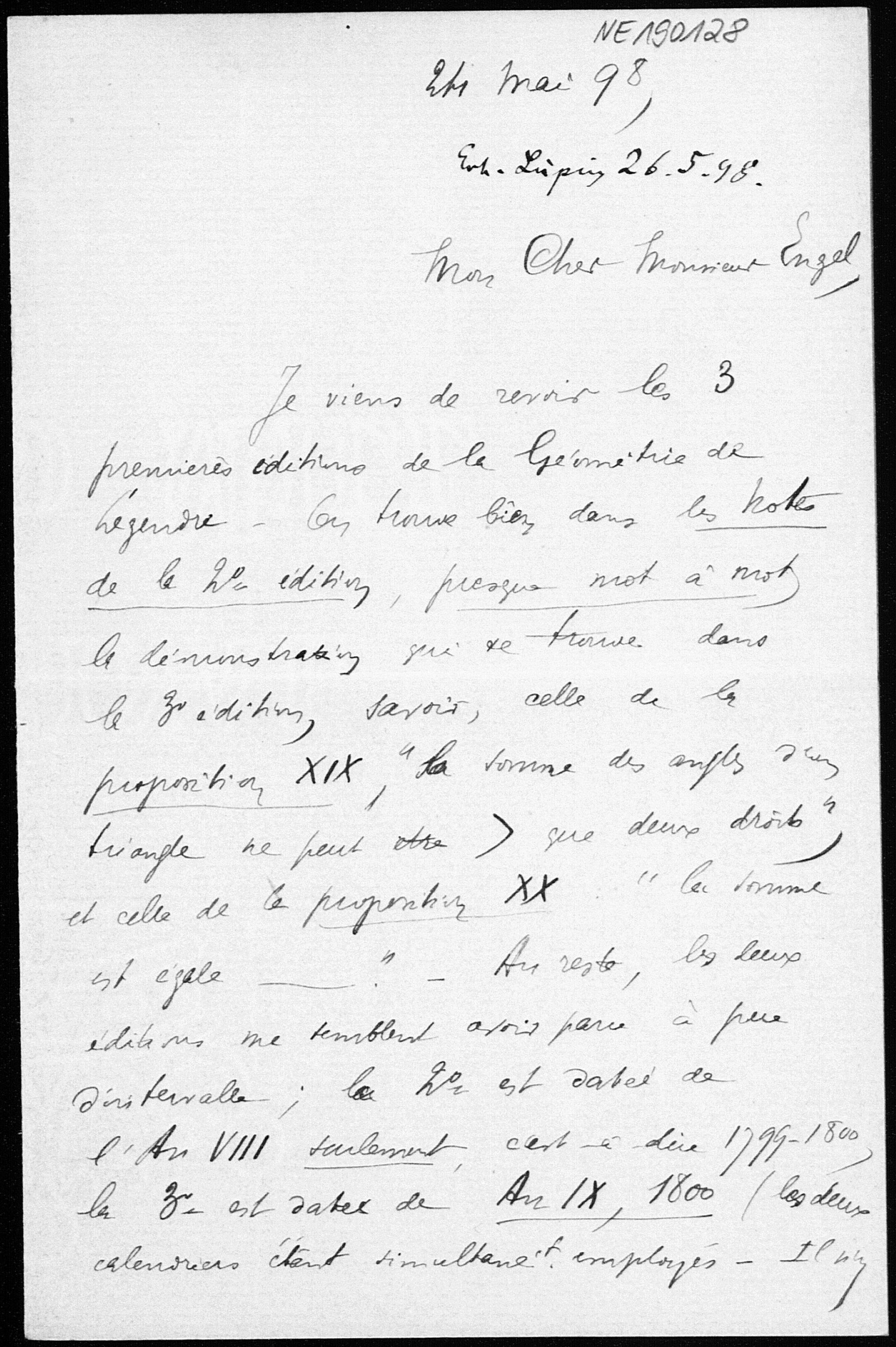 Brief von Arthur Tresse an Friedrich Engel vom 24.5.1898