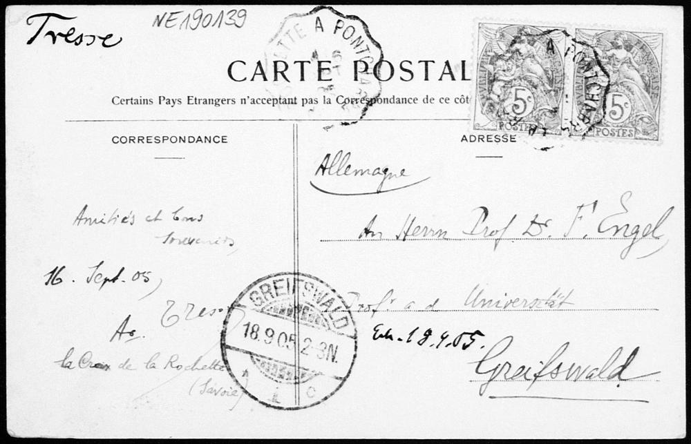 Ansichtskarte von Arthur Tresse an Friedrich Engel vom 16.9.1905