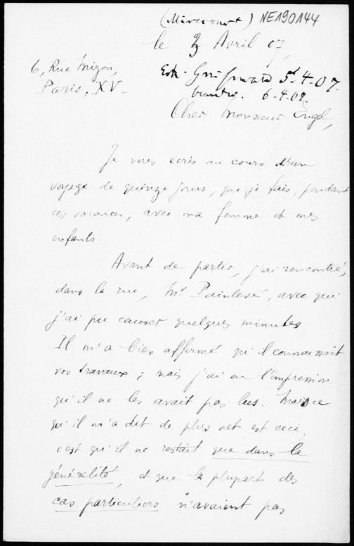 Brief von Arthur Tresse an Friedrich Engel vom 3.4.1907