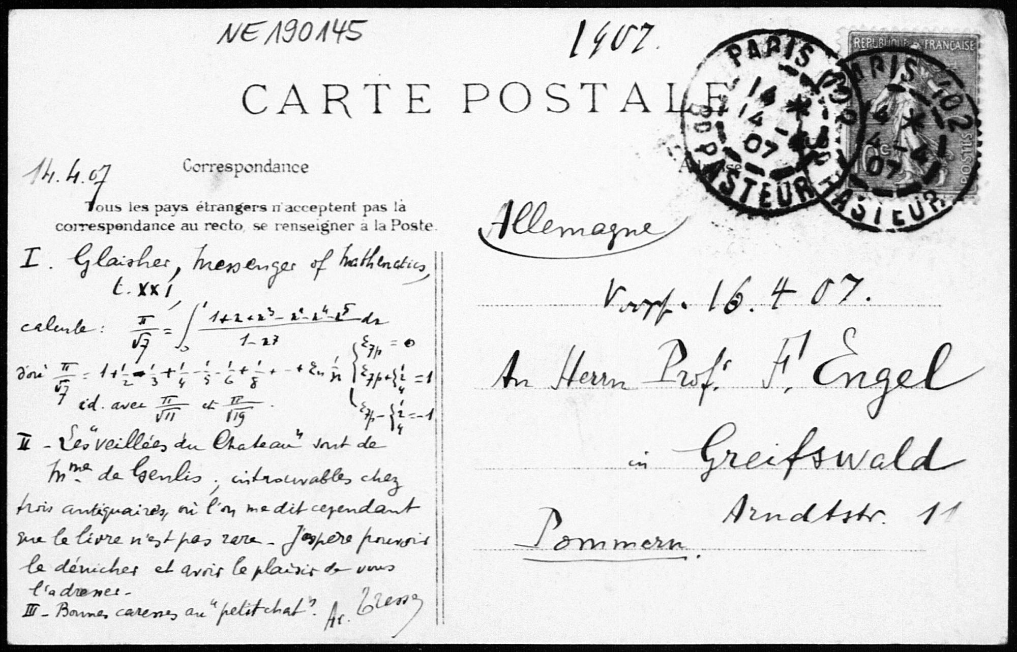 Ansichtskarte von Arthur Tresse an Friedrich Engel vom 14.4.1907