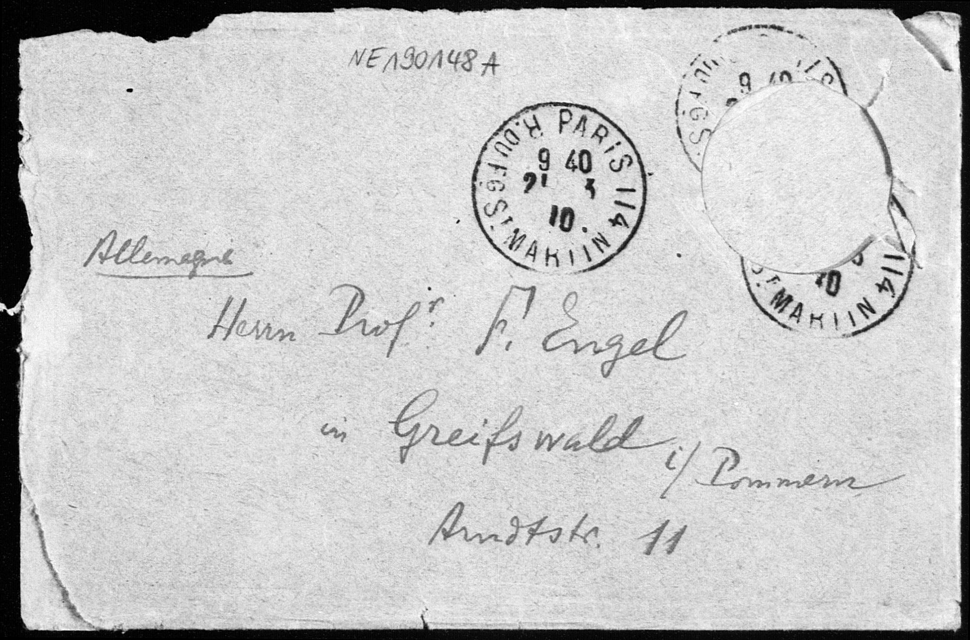 Kuvert mit drei Ansichtskarten von Arthur Tresse an Friedrich Engel vom 21.3.1910