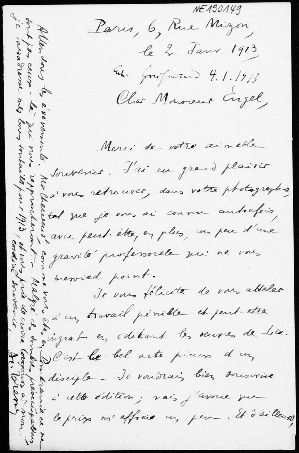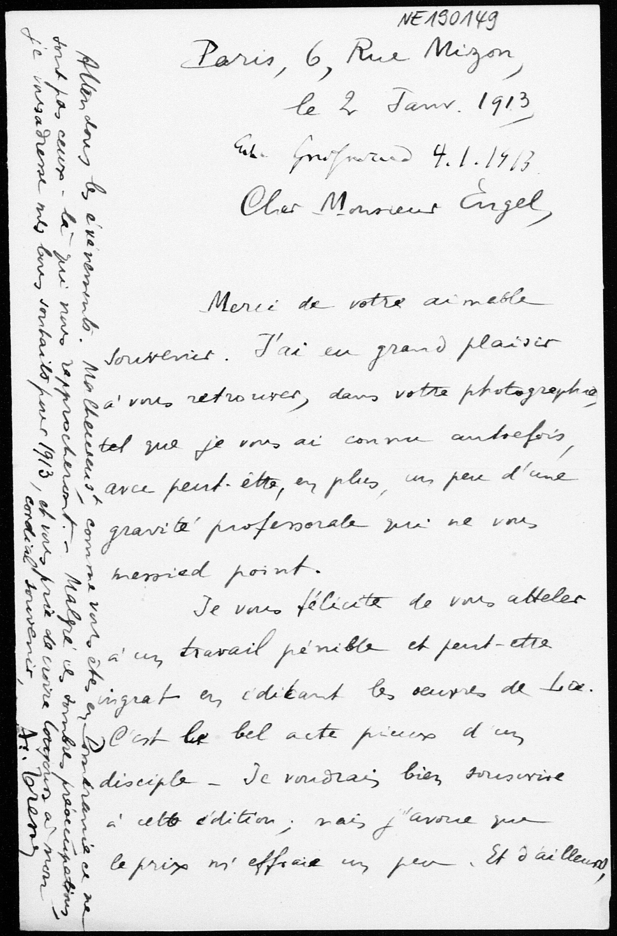 Brief von Arthur Tresse an Friedrich Engel vom 2.1.1913