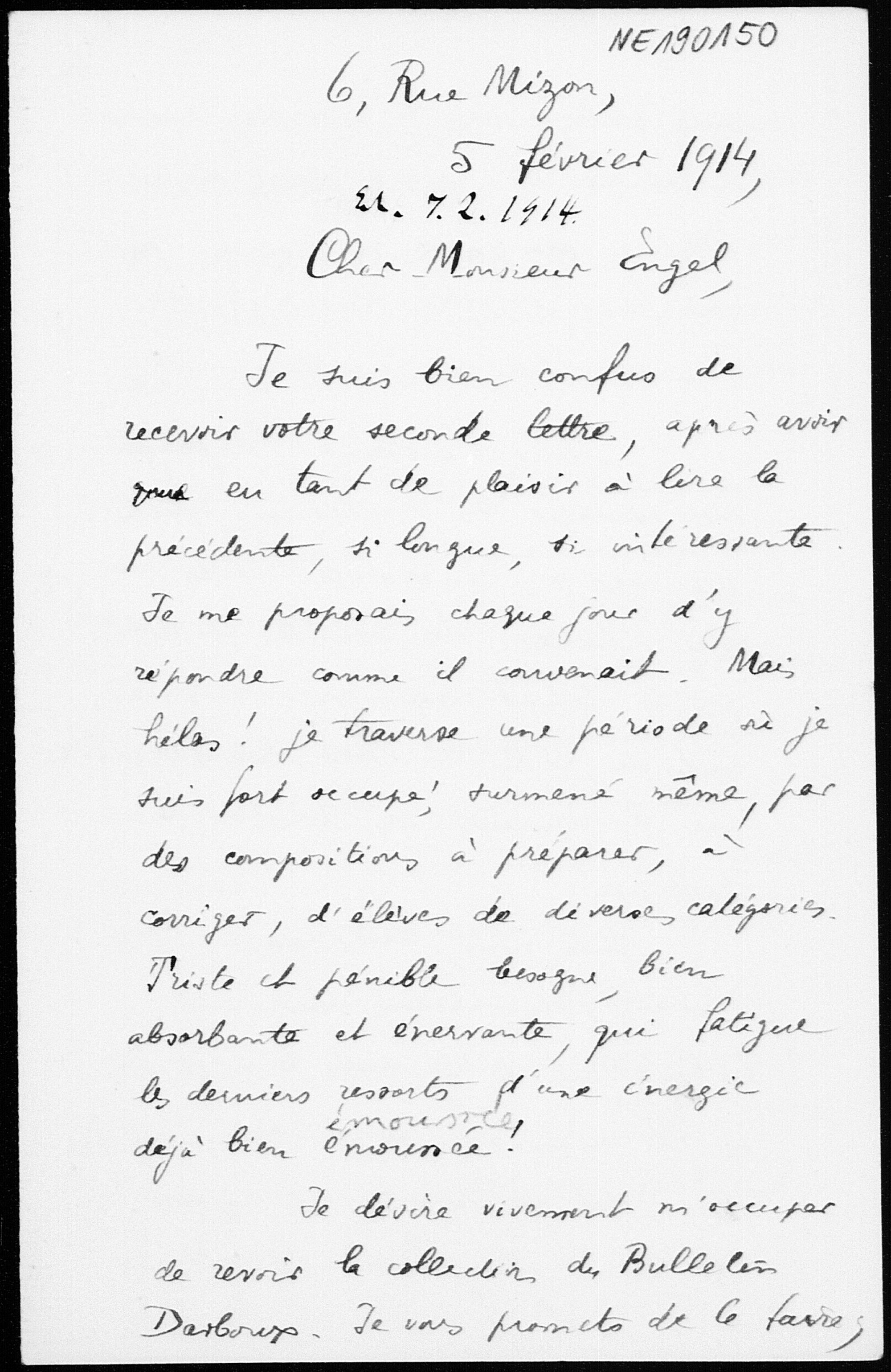 Brief von Arthur Tresse an Friedrich Engel vom 5.2.1914
