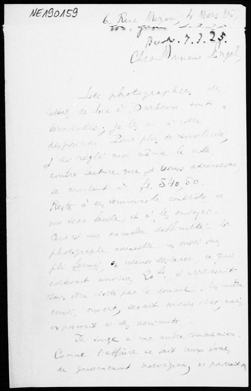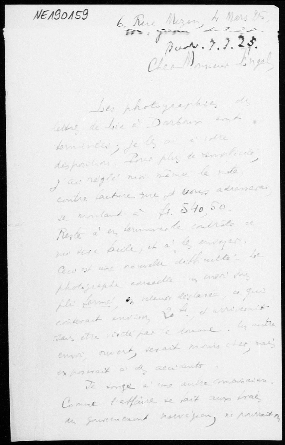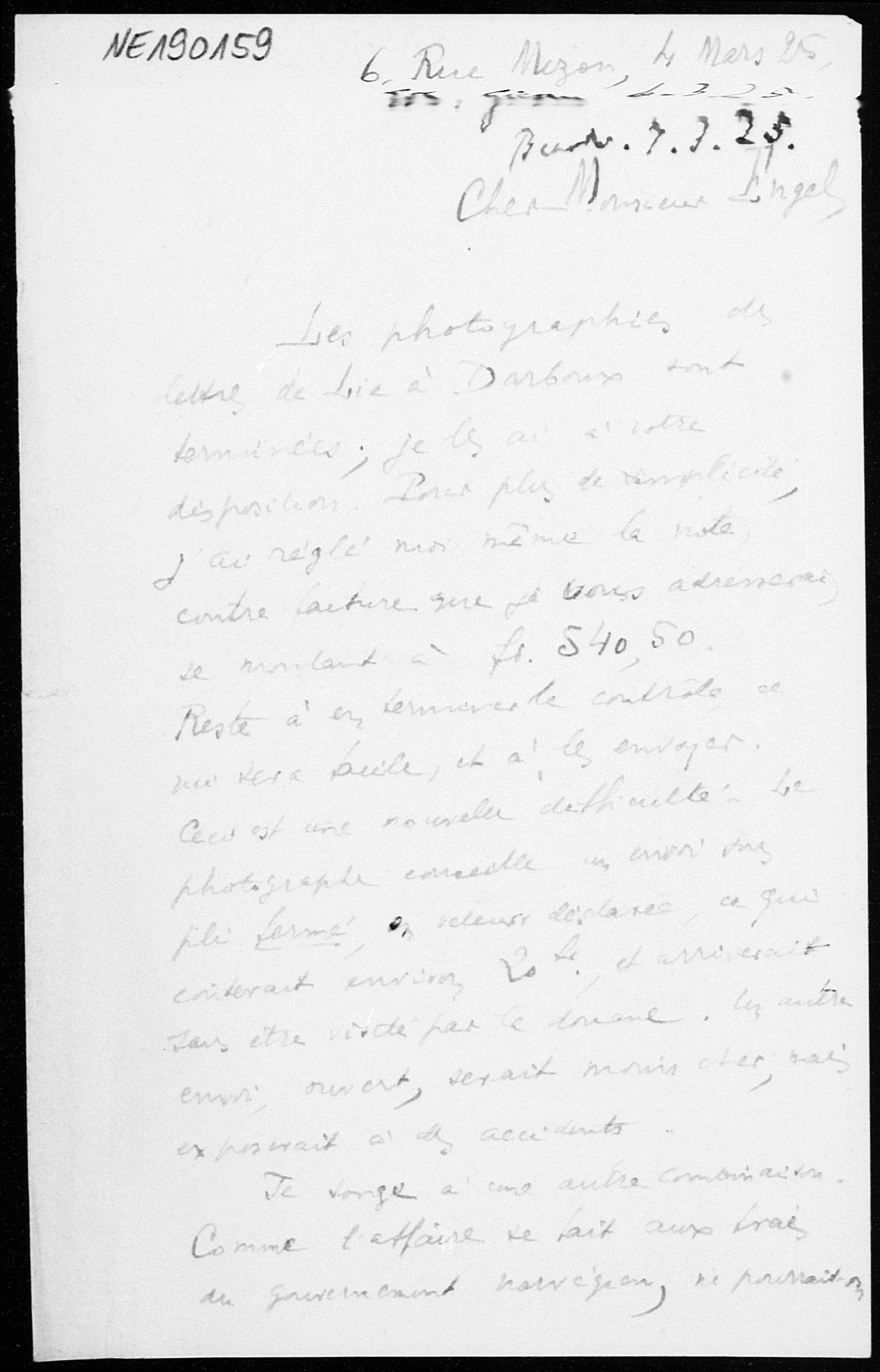 Brief von Arthur Tresse an Friedrich Engel vom 4.3.1925