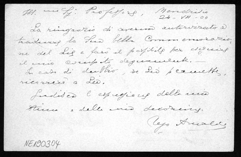 Postkarte von Ugo Amaldi an Friedrich Engel vom 24.7.1900