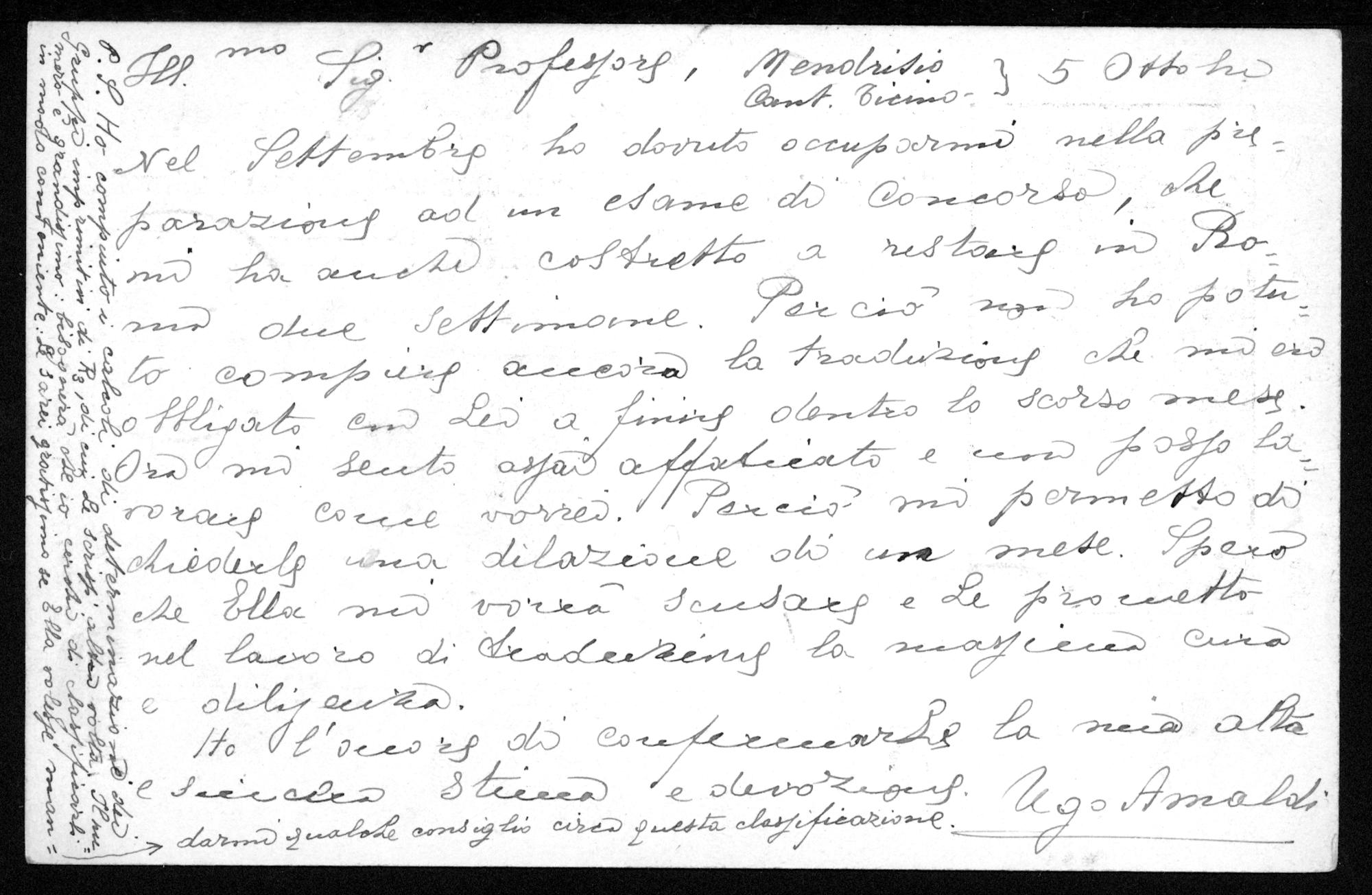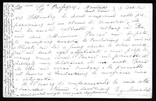 Postkarte von Ugo Amaldi an Friedrich Engel vom 4.10.1900