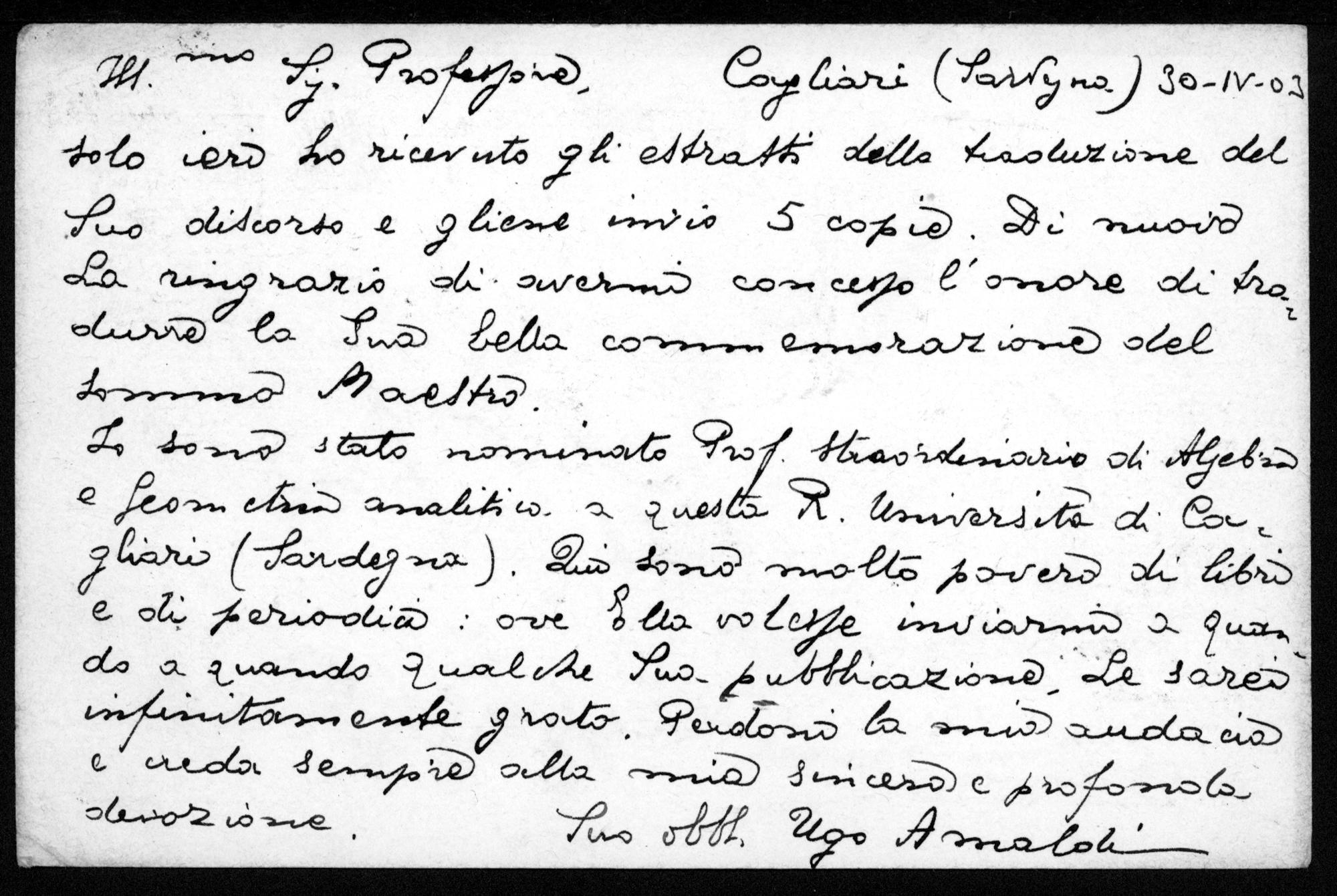 Postkarte von Ugo Amaldi an Friedrich Engel vom 30.4.1903
