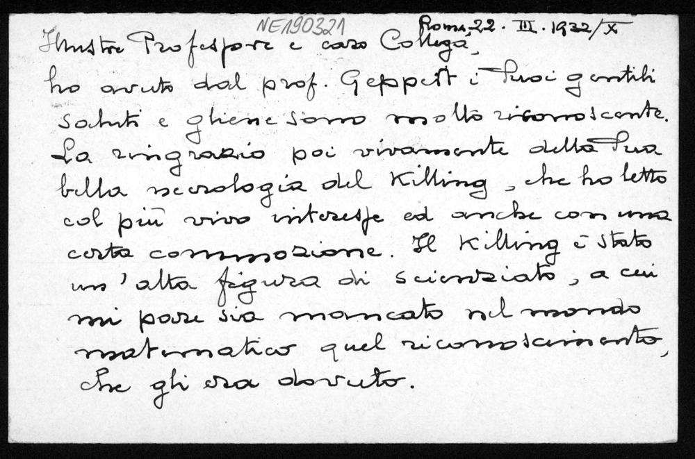 Postkarte von Ugo Amaldi an Friedrich Engel vom 22.3.1932
