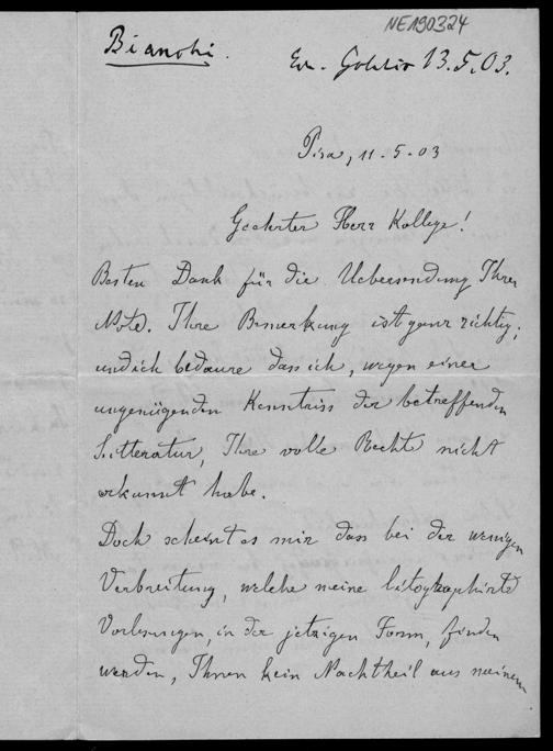 Brief von Luigi Bianchi an Friedrich Engel vom 11.5.1903