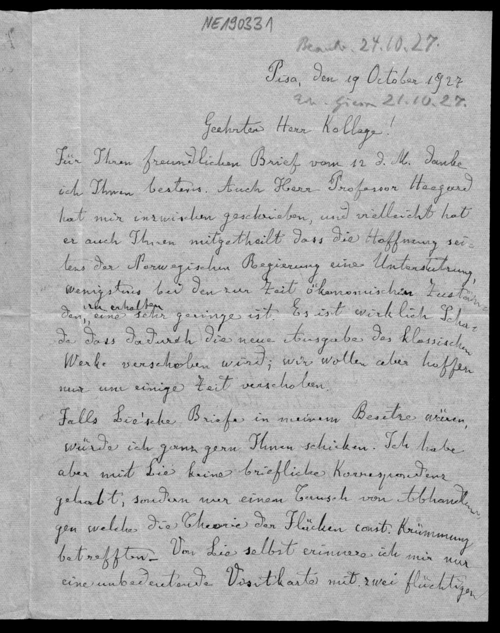 Brief von Luigi Bianchi an Friedrich Engel vom 19.10.1927