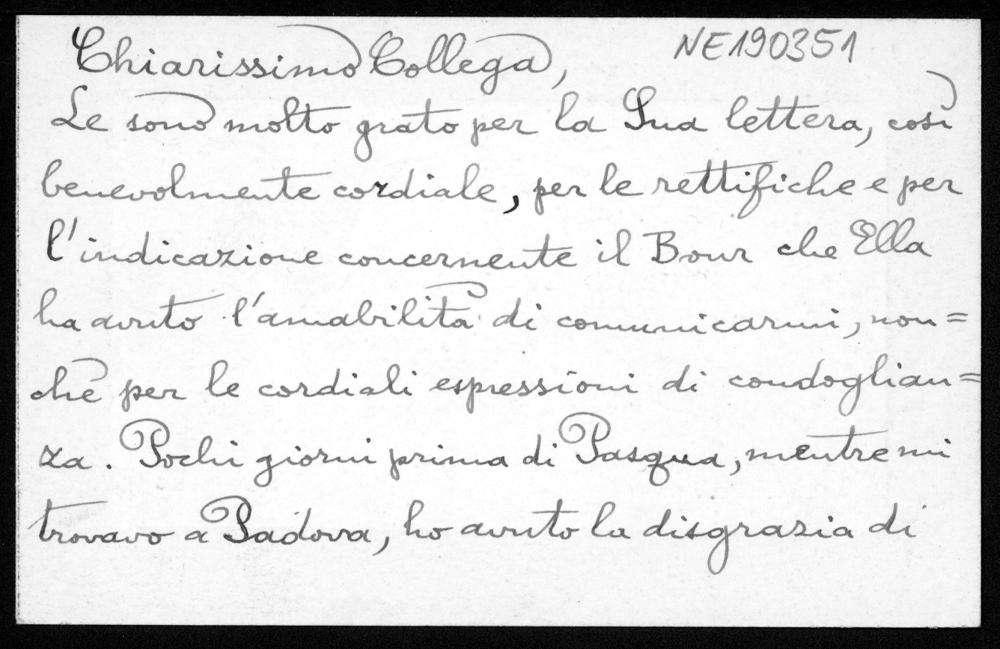 Visitenkarte von Tullio Levi-Civita an Friedrich Engel vom 2.5.1927