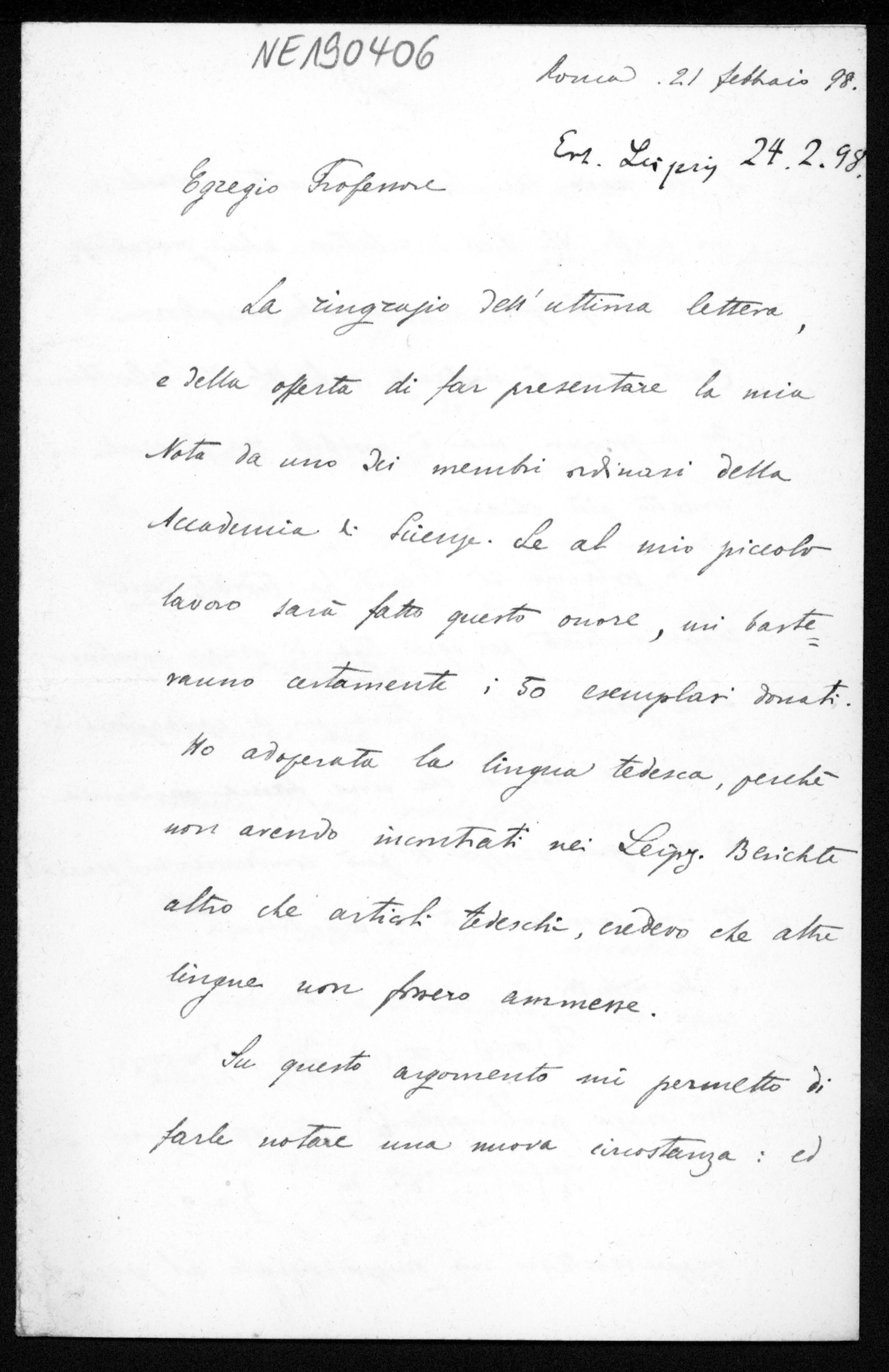 Brief von Paolo Medolaghi an Friedrich Engel vom 21.2.1898