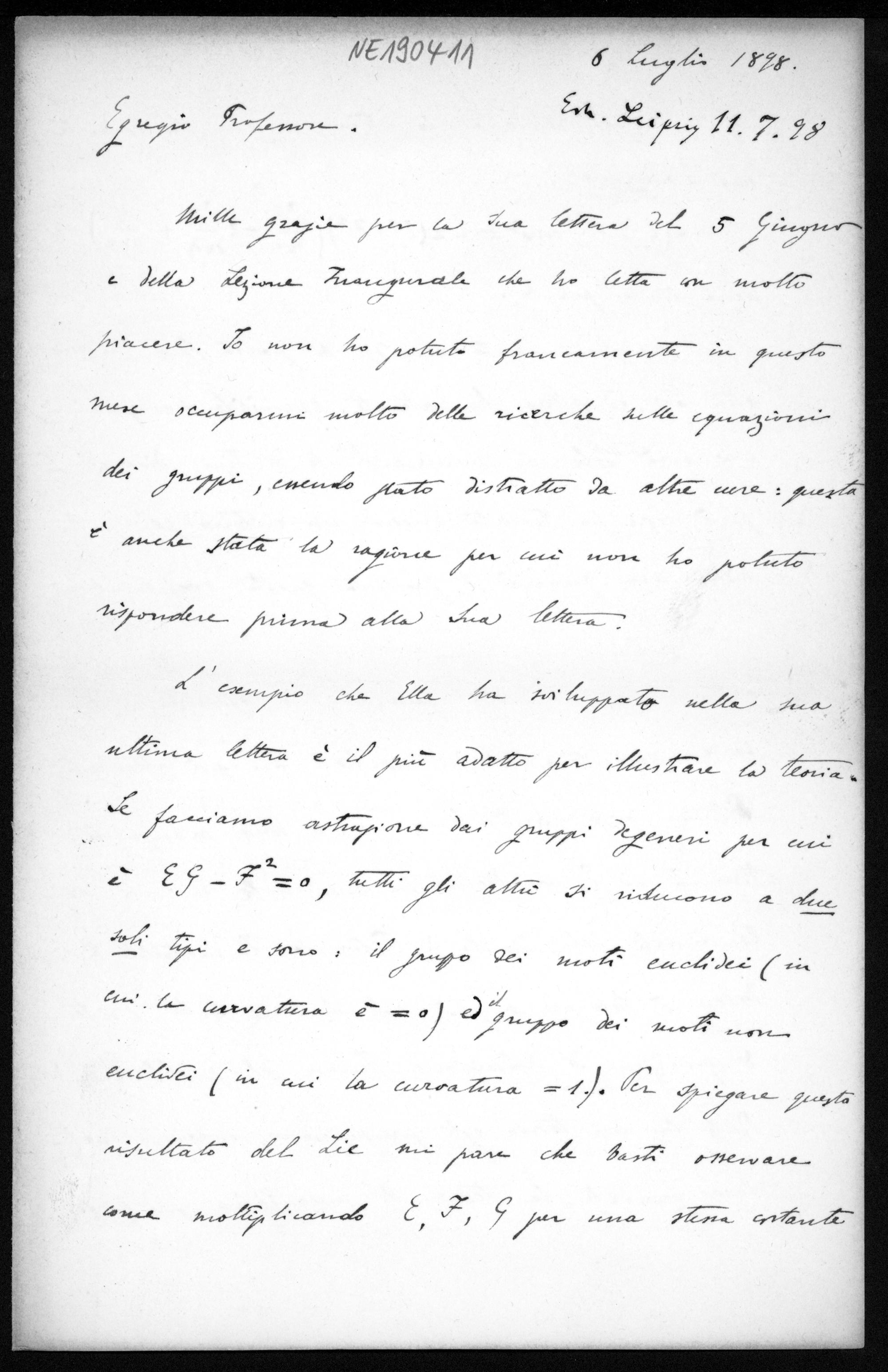 Brief von Paolo Medolaghi an Friedrich Engel vom 6.7.1898