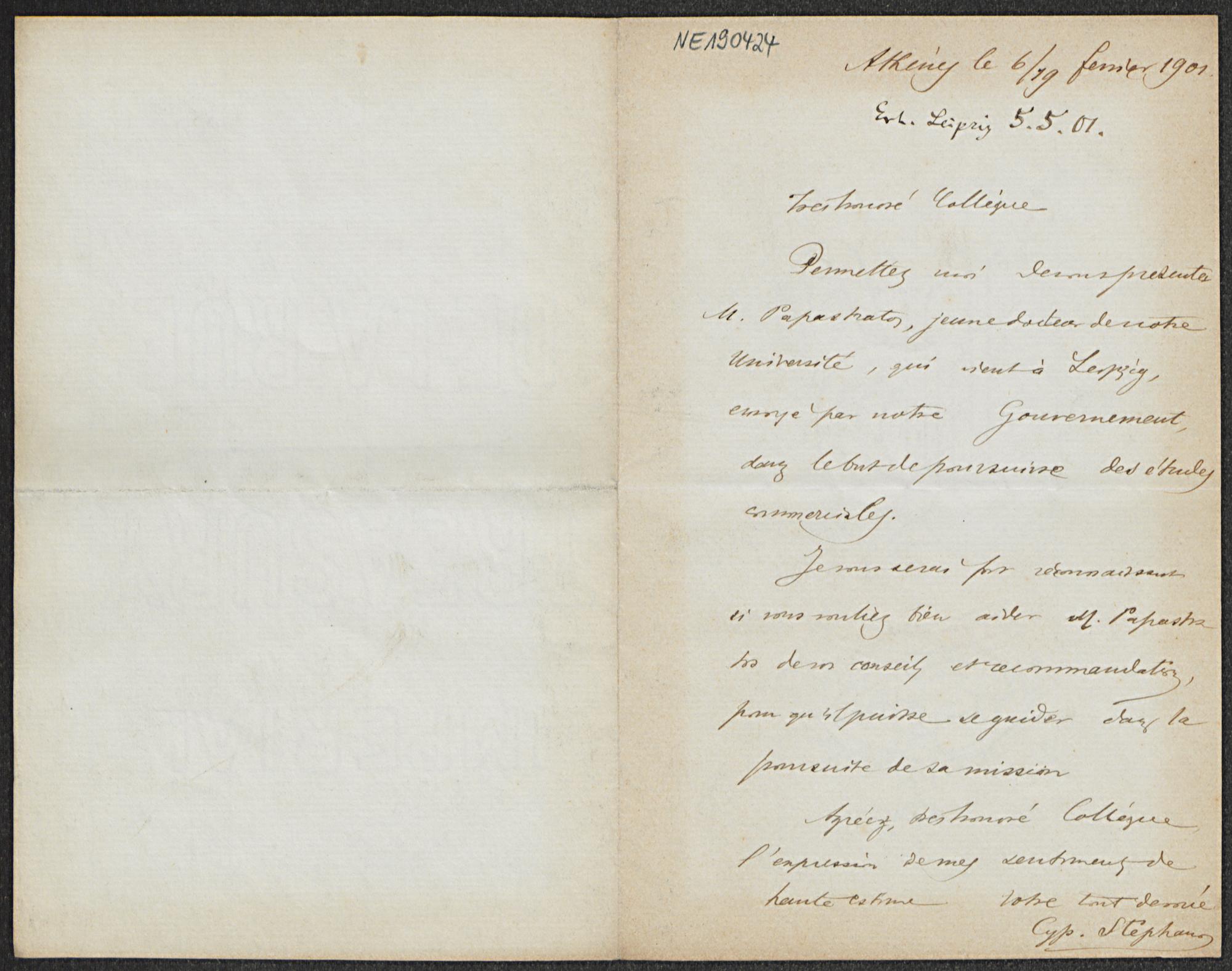 Brief von Cyparissos Stéphanos an Friedrich Engel vom 19.2.1901