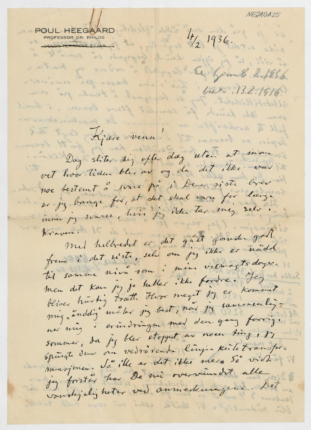 Brief von Poul Heegaard an Friedrich Engel vom 4.2.1936