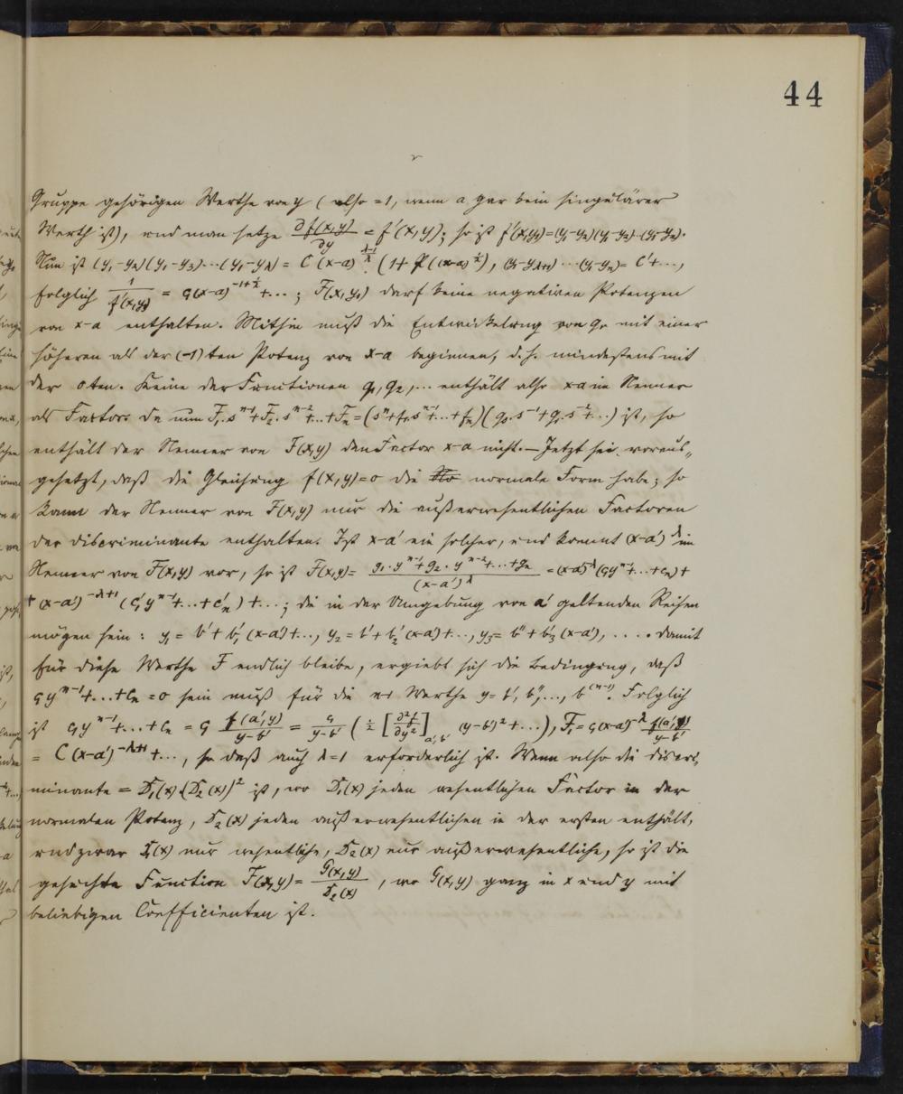 als Fartori da num F."+ Fr. 1...+ Fn=( s"+ frs" t...+ fx)( 90.5+ 9,.st...) ist, so Heche enthält der Nemmer von F( x, y) den Factor&-& nicht. – Jetzt sei voraus, imgesetzt, daß die Gleichung F( X, 9)= 0 die the normale Form habe; so kann der Nenner von F( x, y) mur die außerwesentlichen Factoren. der discriminante enthalten. Ist& – á ein solcher, und kommnt( X- á) Nemeer von F( X, 4) vor, so ist F( x, y) – d₁.y+ 92.47+...+=( xas"( Gy"+...+ c)+ jup+( x- a') -λ+'( cy"+...+ cm) t...; die in der Umgebung mögen sein:& – b'+ b( x- art..., y₂= 1'+ b( xa') t..., yz= b+ by( x- a'), für diese Werthe F endlich bleibe, ergiebt sich die Bedingung, daß ayt... tle: 0 sein muß für die er Werthe g- tt, by,..., b. Folglich dist Gyr 4+...+ le= 9 f( a, y)='"(=[ 144]( 4-6) ²+...), F- sex- a) a fla C( x- á) –dett t..., ſo daß auch d – 1 erforderlich ist. Wenn also die disert, minante – F( v)( Se()) ist, err F( x) jeden wesentlichen Füctor in der which normalen Potenz, San( 3) jeden außerwesentlichen in der ersten enthält, rundzwar 5( 1) nur wesentliche, Fa( x) nur außerwesentliche, so ist die G( x, y) ganz gesuchte Function Flac) – beliebigen Coefficienten ist.