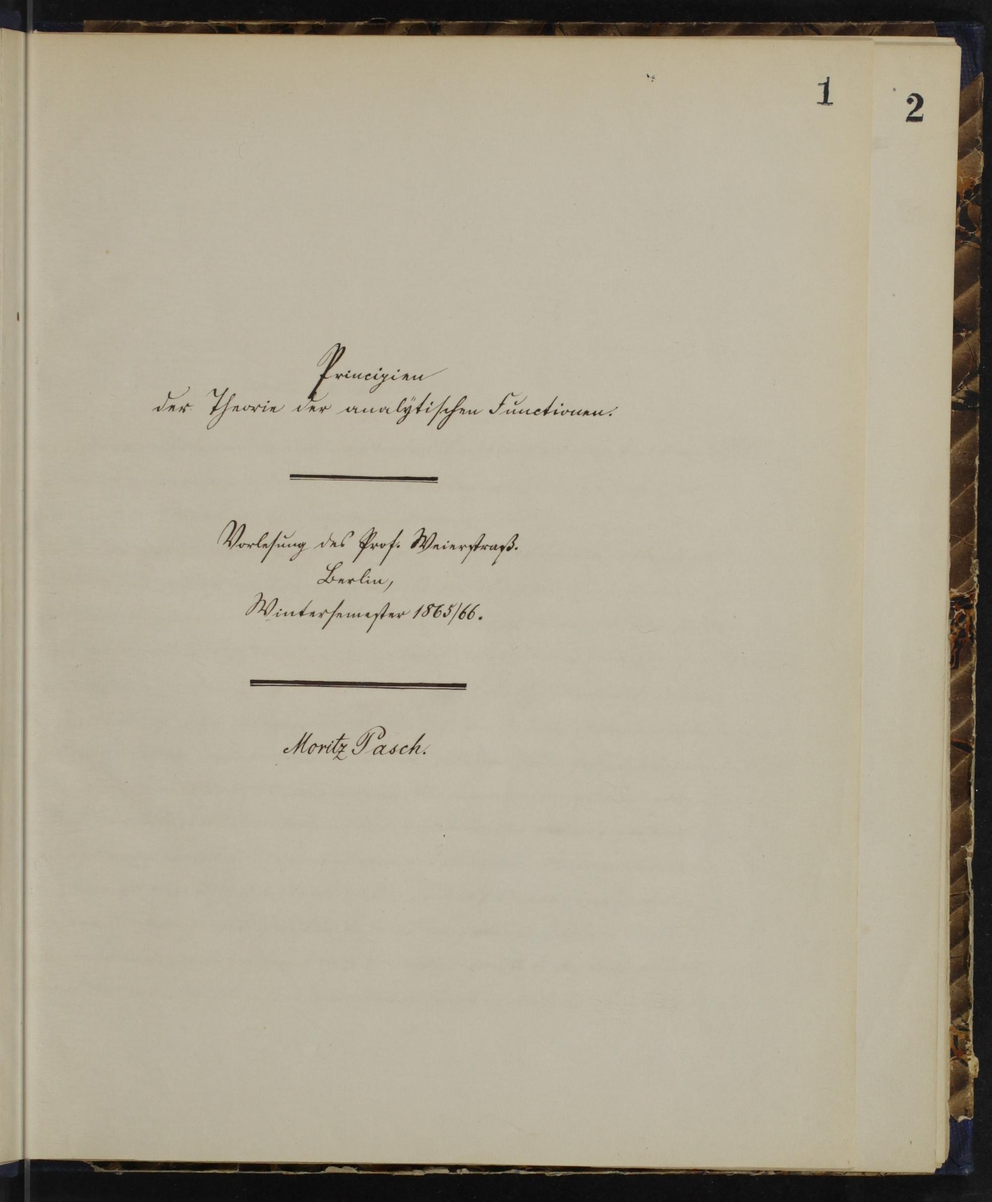 UB Gießen, Nachl. Pasch Bd. 19 - Principien der Theorie der analytische Functionen - UB Gießen, Nachl. Pasch Bd. 19 : Vorlesungsnachschrift von Moritz Pasch / Karl Weierstraß