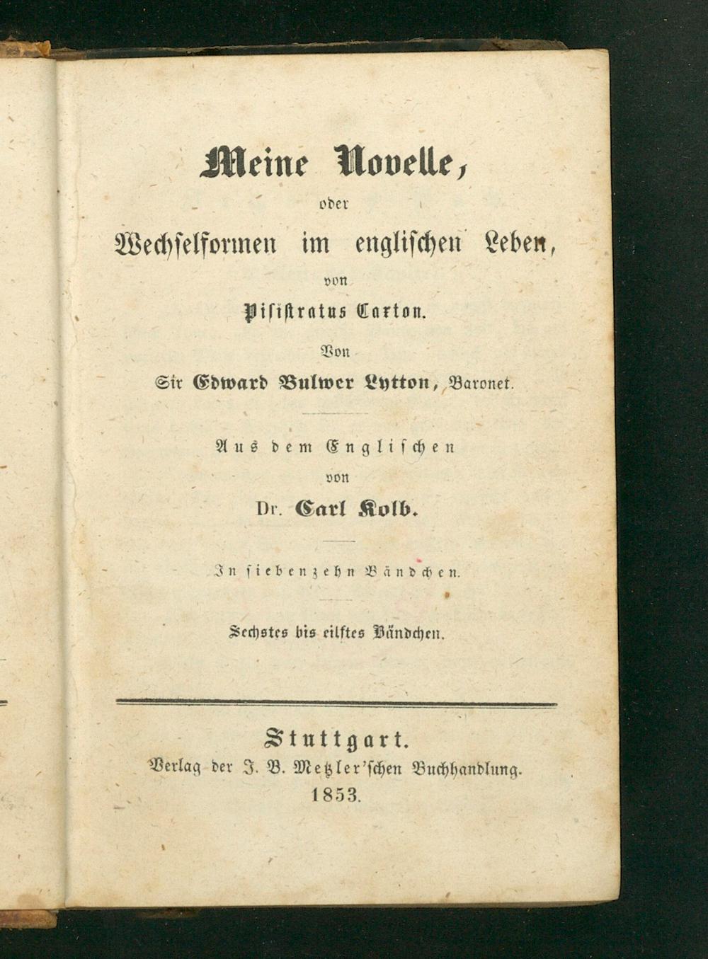 Piſiſtratus Carton. Von Sir Edward Bulwer Lytton, Baronet. Aus dem Engliſchen von