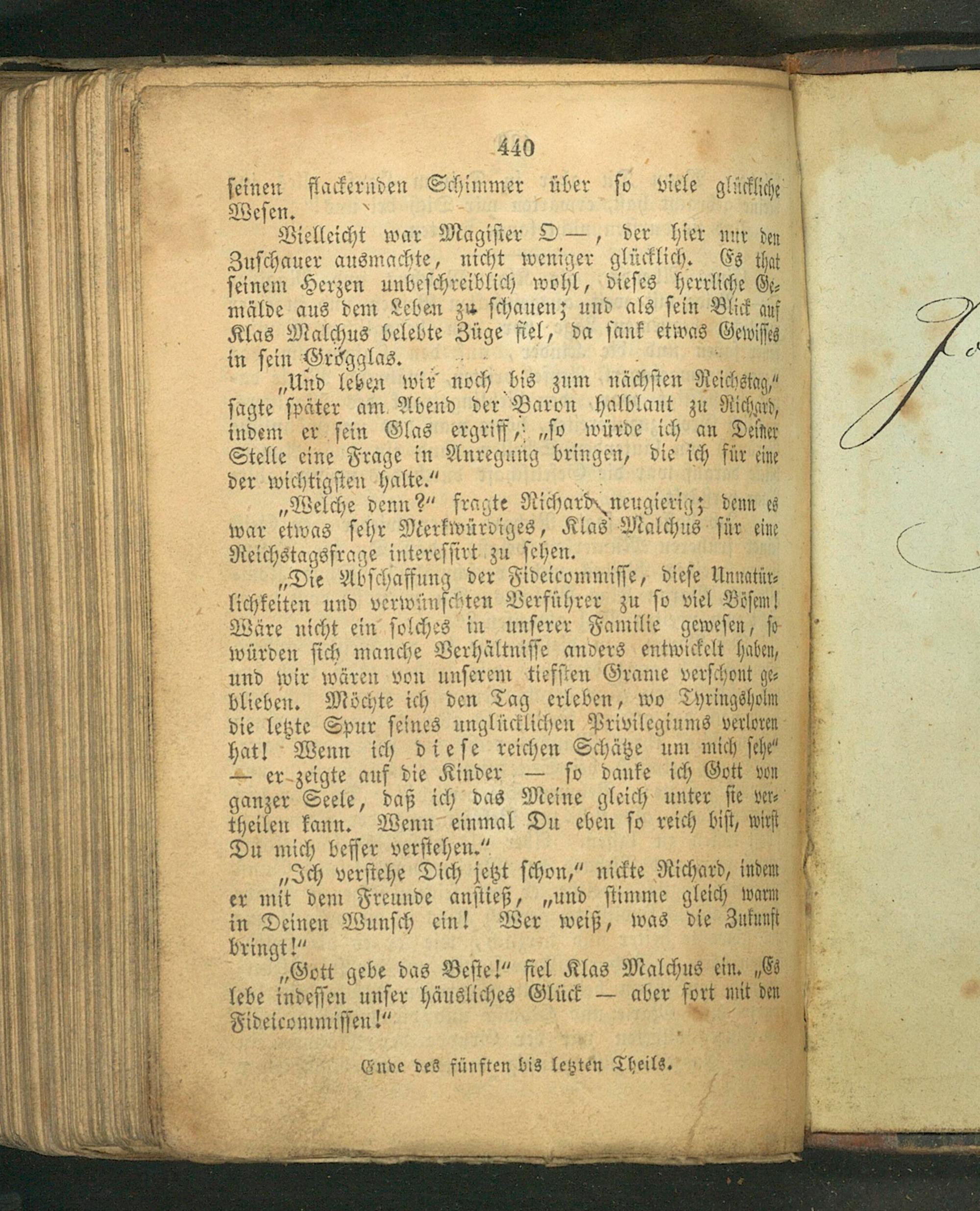Ende des fünften bis letzten Theils.